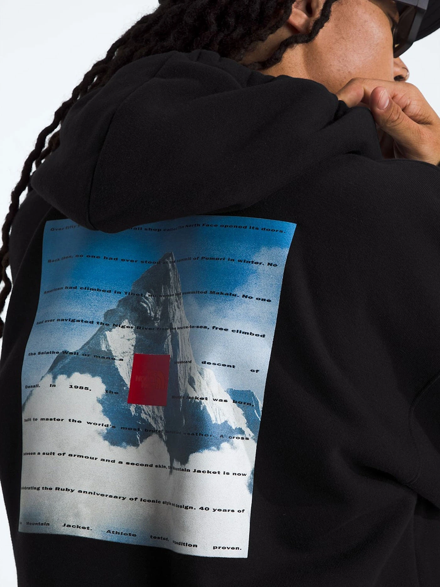 This heavyweight hoodie celebrates 40 years of our iconic mountain jacket. With a large back graphic and front red box logo, this relaxed-fit layer is made for comfort and coverage wherever you go—just like the original Mountain Jacket. Plus, as one of our Circular Design styles it can be recycled when you get it back to us.