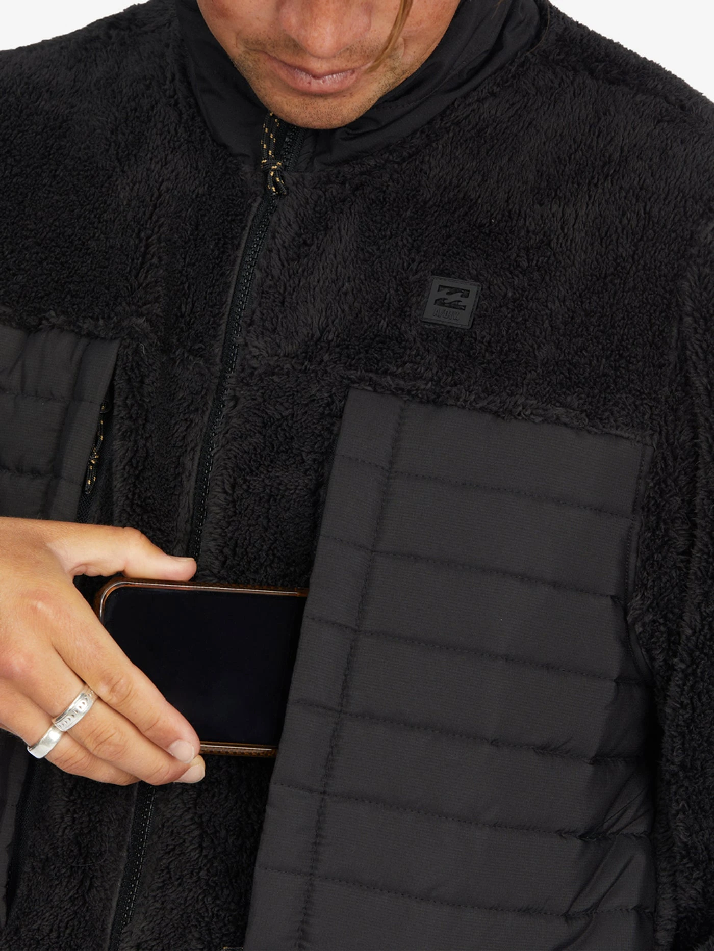 The Billabong Glacier Zip-Up Jacket, part of our Adventure Division Collection, offers premium, sustainable fabrics and engineered technology for the ultimate cold weather essential. Made from recycled polyester, faux sherpa and quilted nylon at the collar and pockets, this men’s jacket features a zip front closure, mock neck collar, long sleeves, elastic cuffs and elastic bungee closure at the hem for additional warmth throughout. Topped with zippered chest pockets and zippered front hand pockets for all your needs.