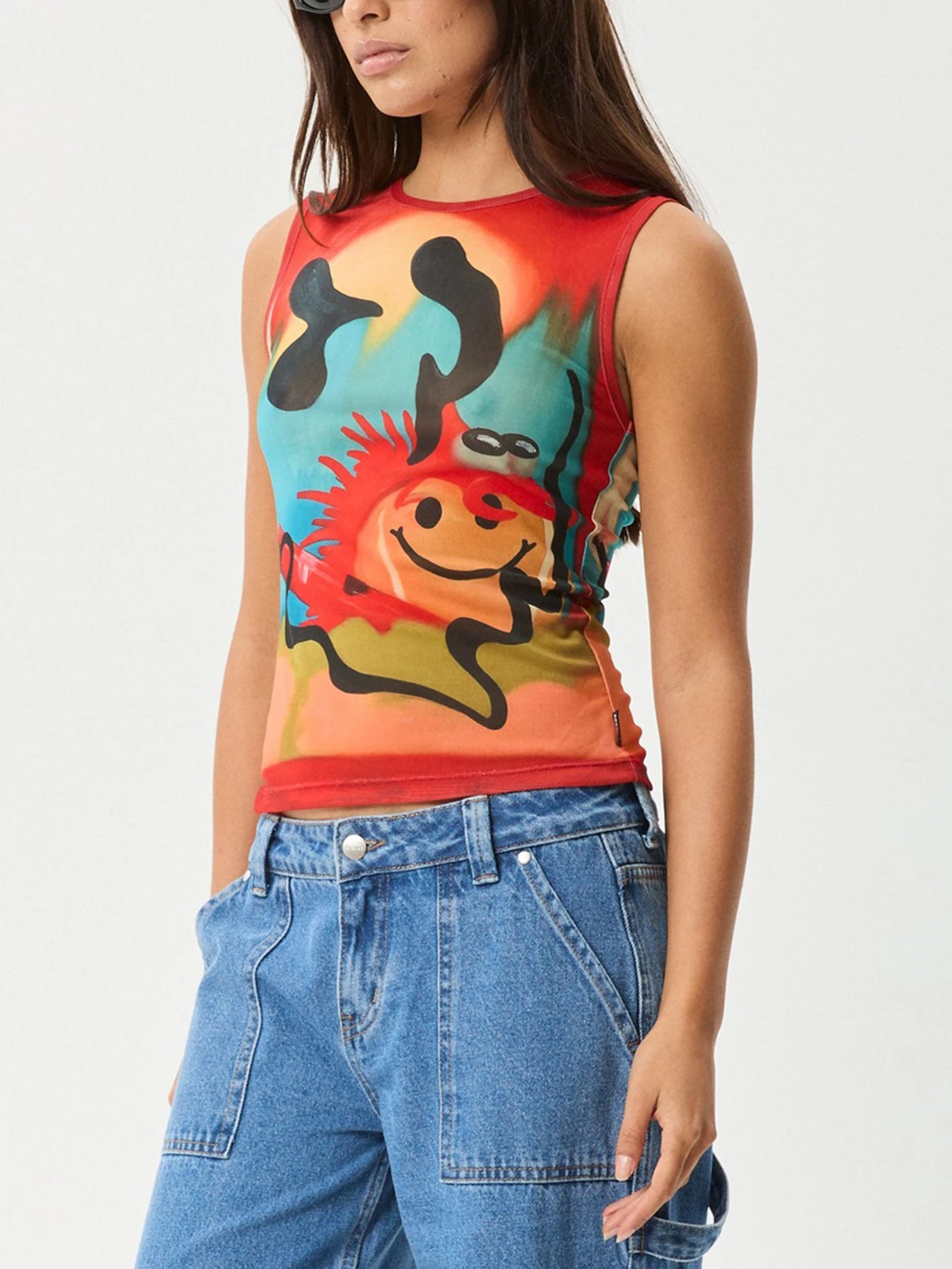 Heath Nock, a contemporary Australian painter with 20 years experience tattooing, brings his unique figurative style to life by blending references from popular culture and his quirky childhood surrounded by weird toys and objects. For this season’s ‘Create Not Destroy’ collection, he takes inspiration from apocalyptic themes, blending Mad Max grit with 90s armageddon vibes, using junk toys from his own collection to create a still-life composition brought to life on canvas.