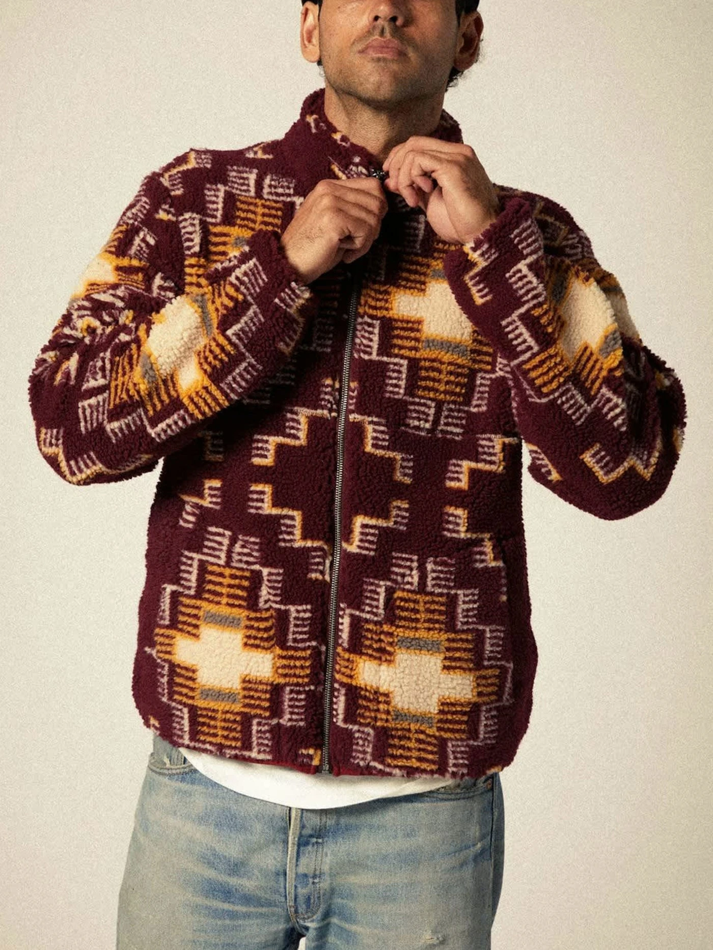 Meet your cold-weather essential: the Arctic Fleece Mock Neck Jacket. Its high pile sherpa texture delivers unmatched coziness, while the custom prints, inspired by vintage upholstery, make a bold style statement. Its an everyday functional piece that’s a perfect layer for brisk mornings. Whether you’re heading out for a casual outing or layering up for extra warmth, this jacket adds a unique touch to your wardrobe without sacrificing comfort.