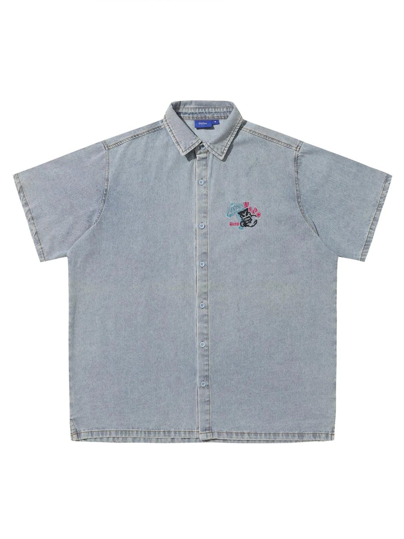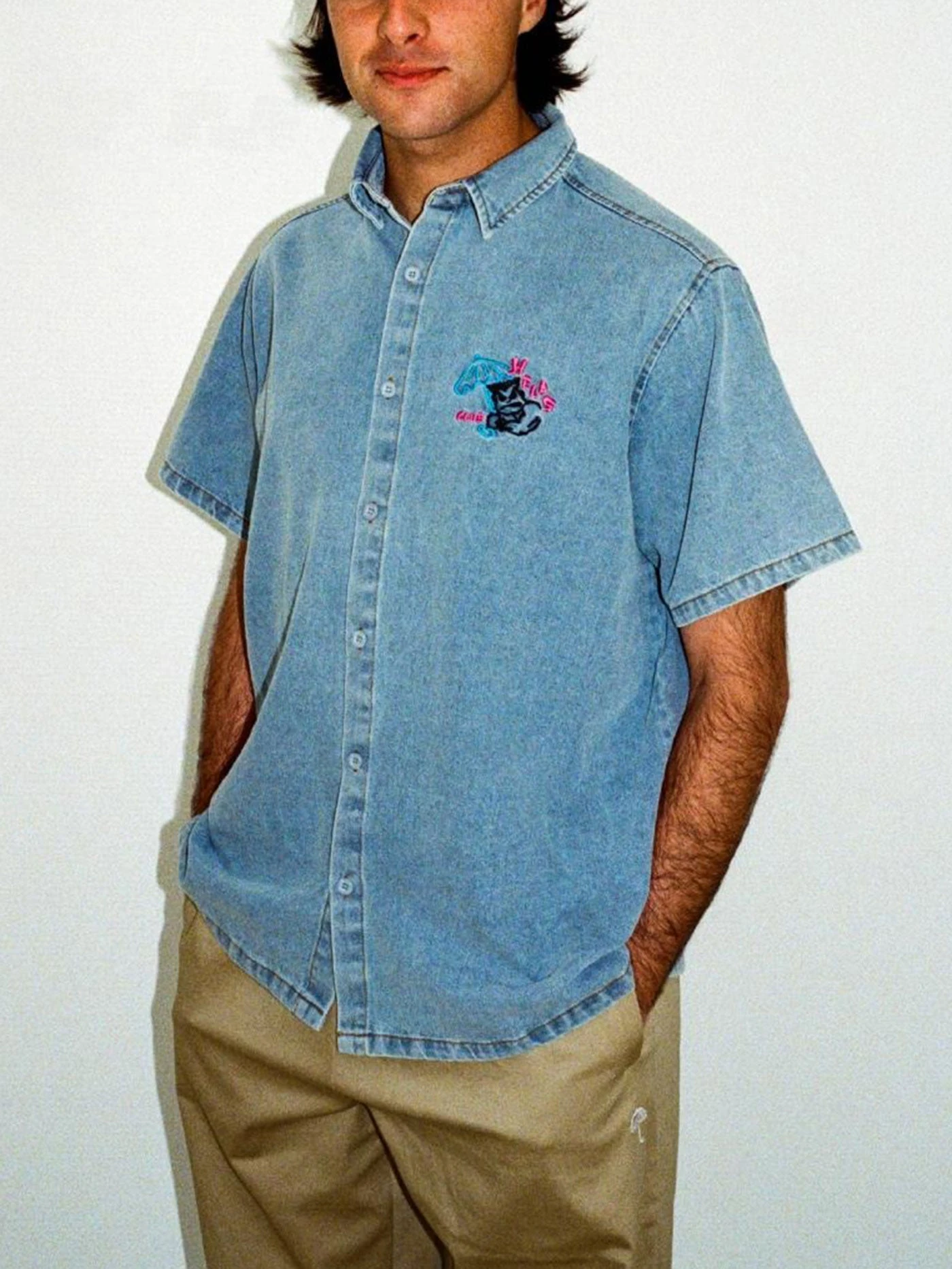 Bad Washed Denim Short Sleeve Buttondown Shirt for men by Hélas.