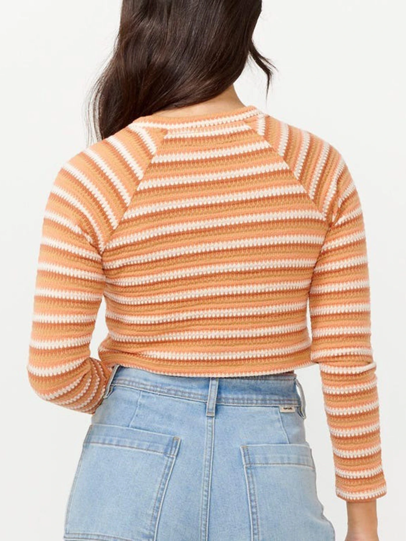 Introducing the Bobbi Stripe Long Sleeve Top from our Kindred Palms collection – where paradise is found anew. This fitted top is designed for versatile styling and features a yarn-dyed interest stripe fabric that will elevate any outfit. The raglan sleeve adds a touch of sophistication, making this top perfect for dressing up or down. Take a trip down memory lane to lazy beach days spent seeking shade under the palm trees, sipping from coconuts, and surfing in crystal clear waters. Add the Bobbi Stripe Long Sleeve Top to your wardrobe for a chic and effortless look.