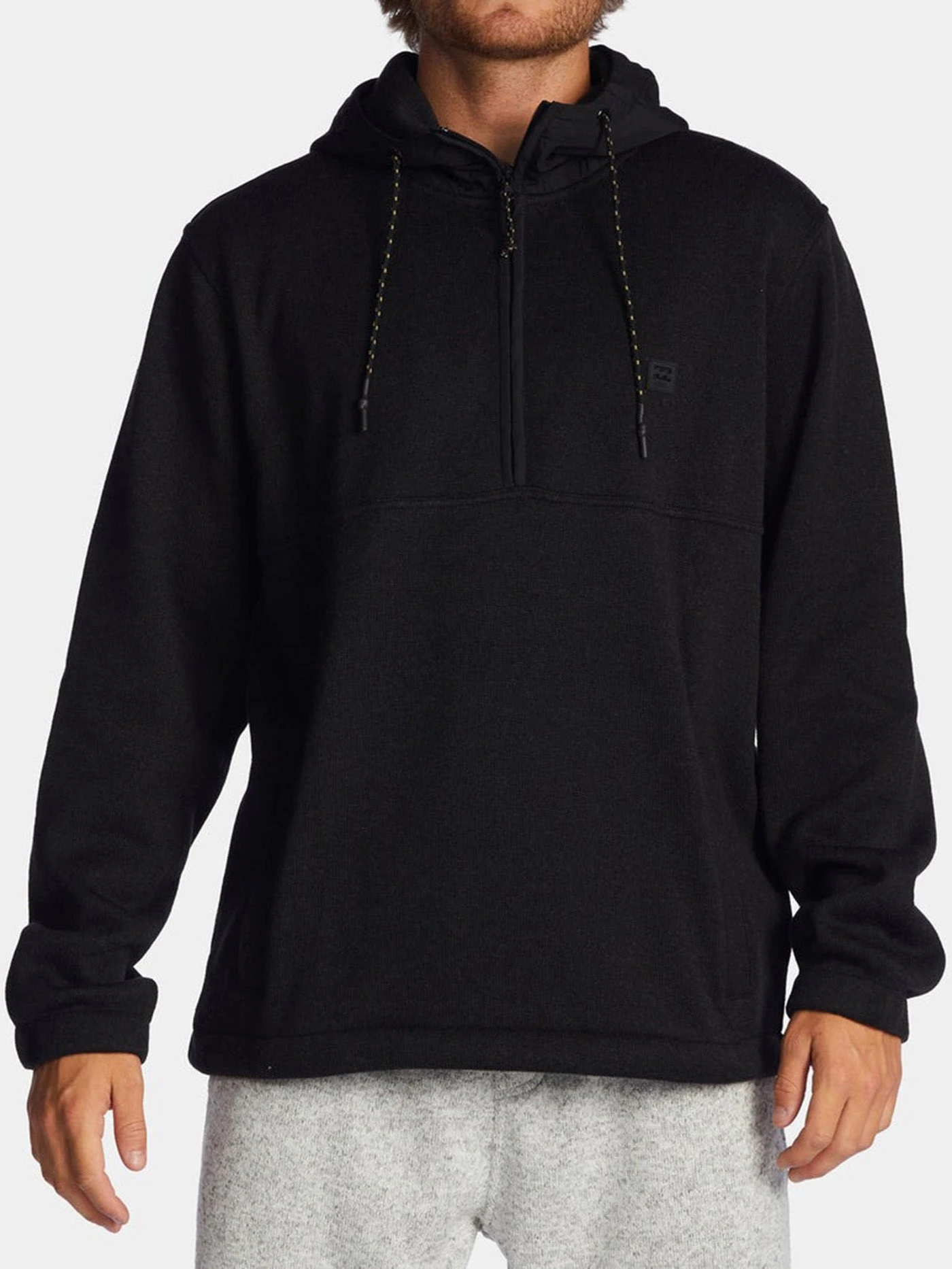 Step up your cold weather look in the Billabong A/Div Boundary Hooded Half-Zip Pullover. Made from brushed knit fleece treated in DWR coating, this thick hooded pullover features a half-zip closure, elastic cuffs, bungee cinched hem, front welt pockets and Adventure Division Collection logo branding.