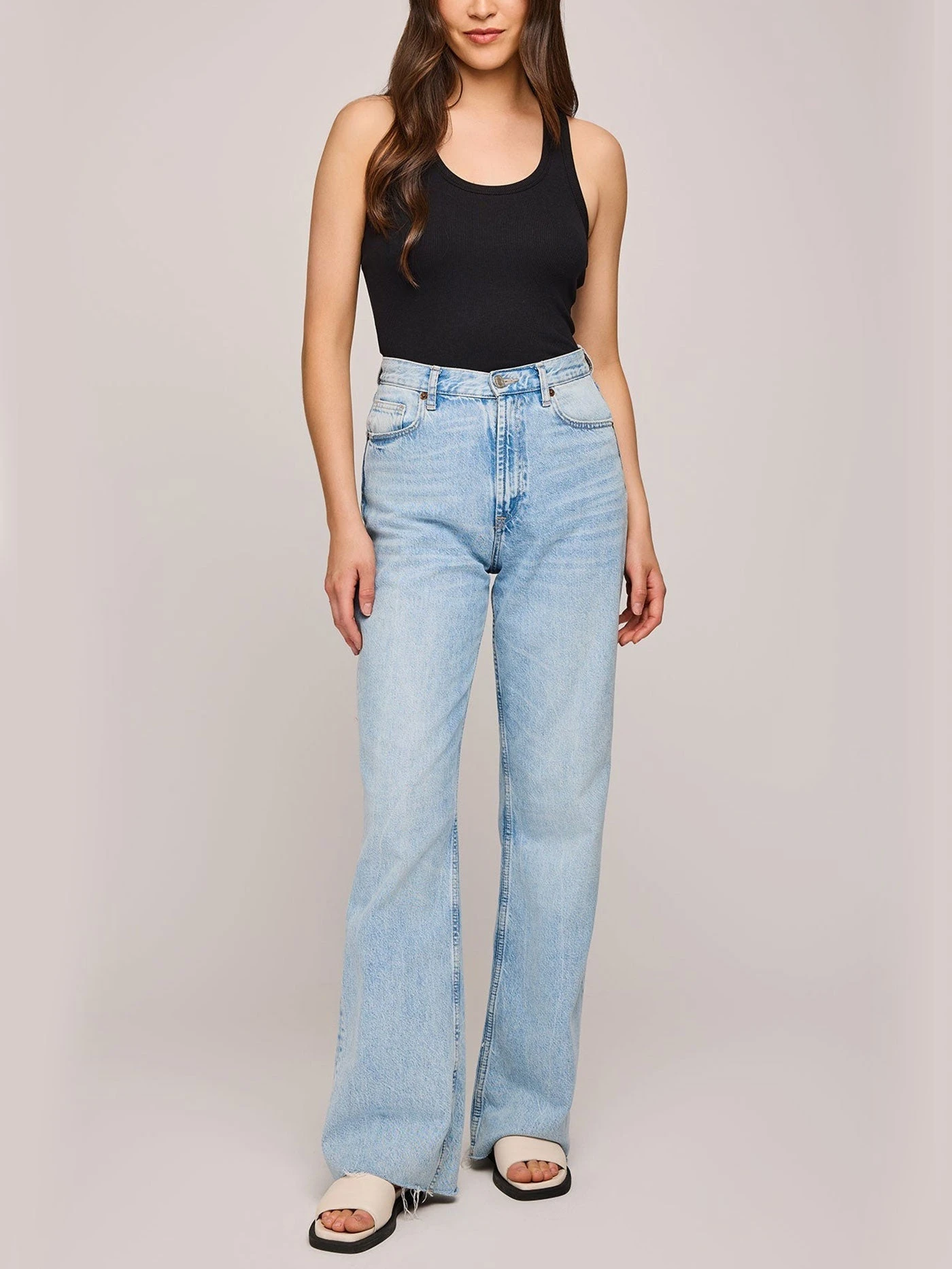 The Bowen top is made of a stretchy ribbed fabric that hugs the body. The scoop neckline and racerback make it an essential layering piece.