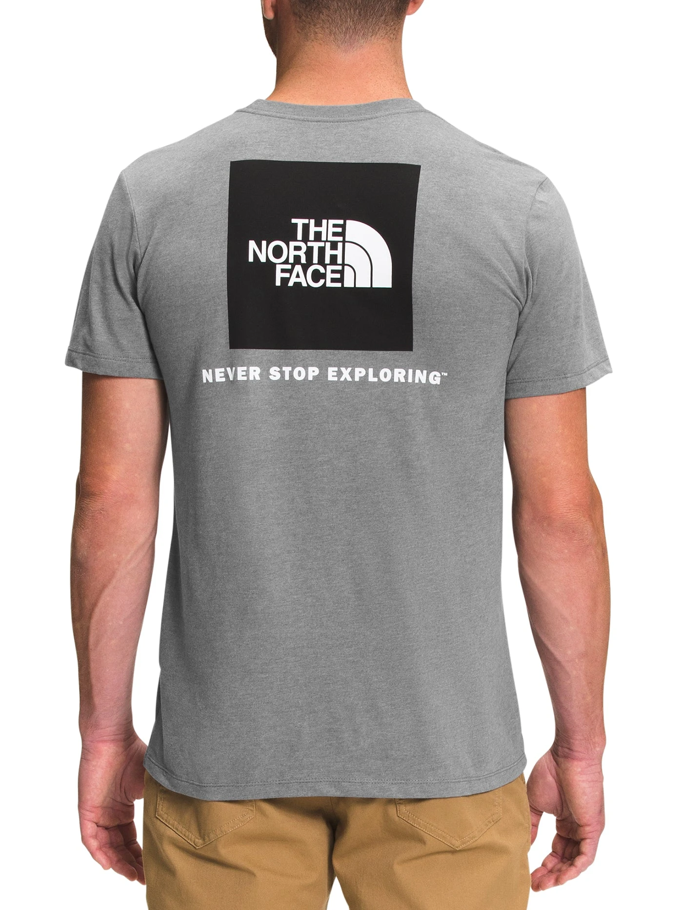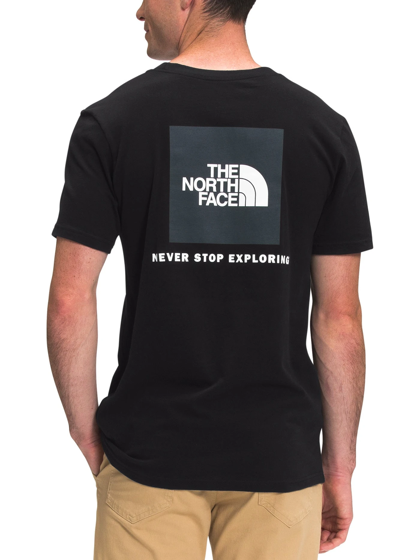 The short-sleeved Box NSE Tee is standard fit, has a ribbed collar and cuffs, and proudly features the words that drive everything we do: Never Stop Exploring.
