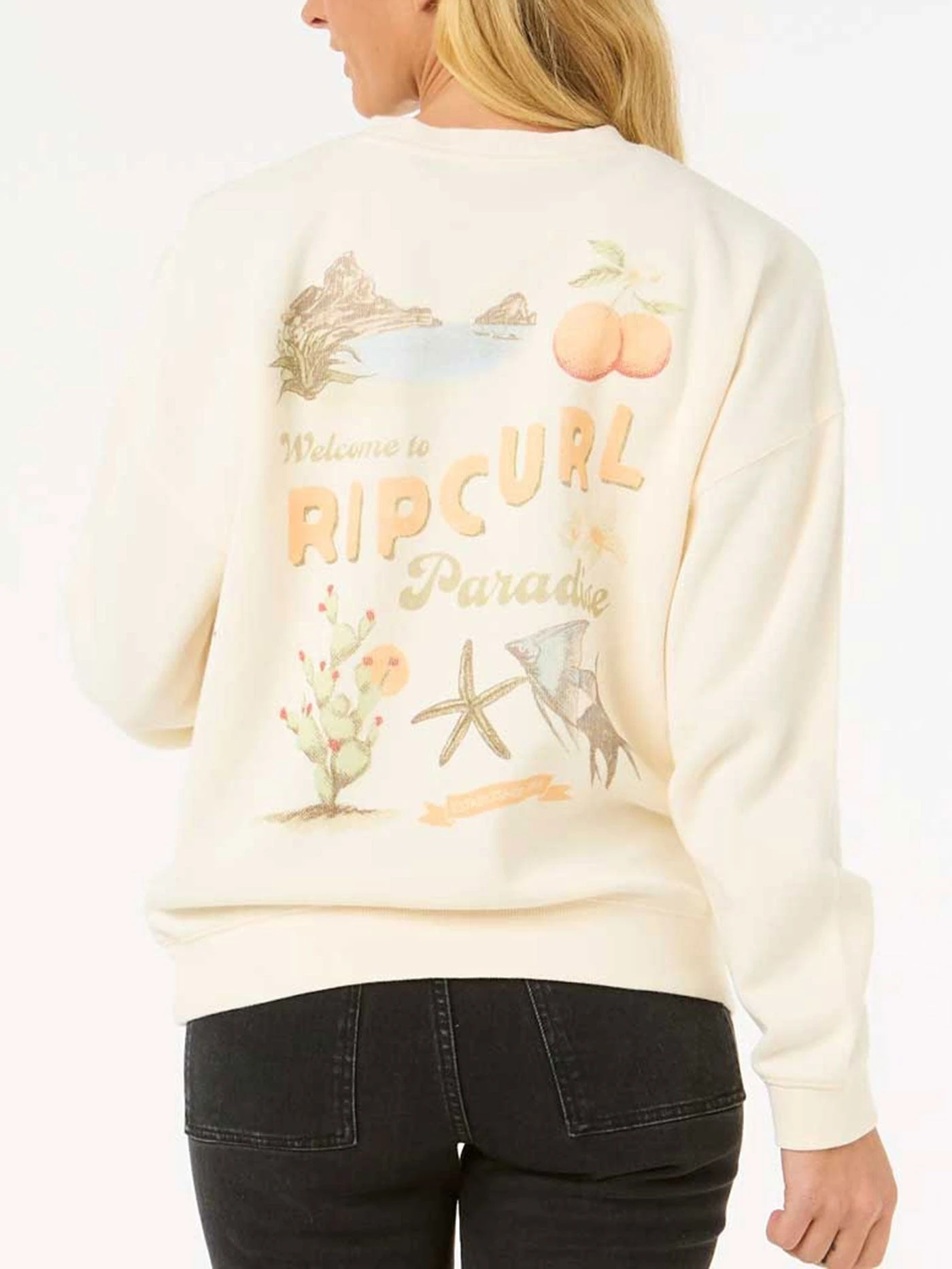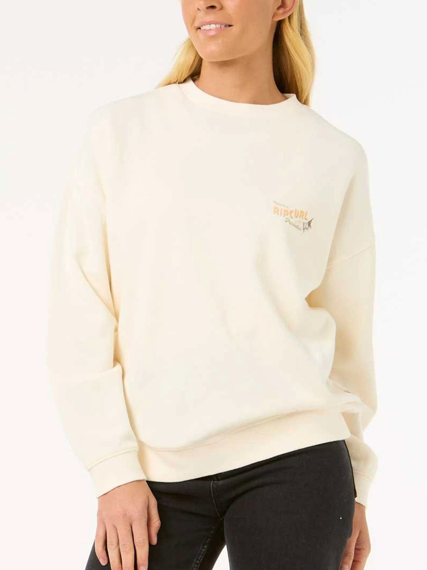 The Cala Vadella Heritage Crew features 100% cotton interlock fabric with a heritage fit and silicon wash finish. Show off its front-and-back prints, woven flag label, and timeless coastal vibes.