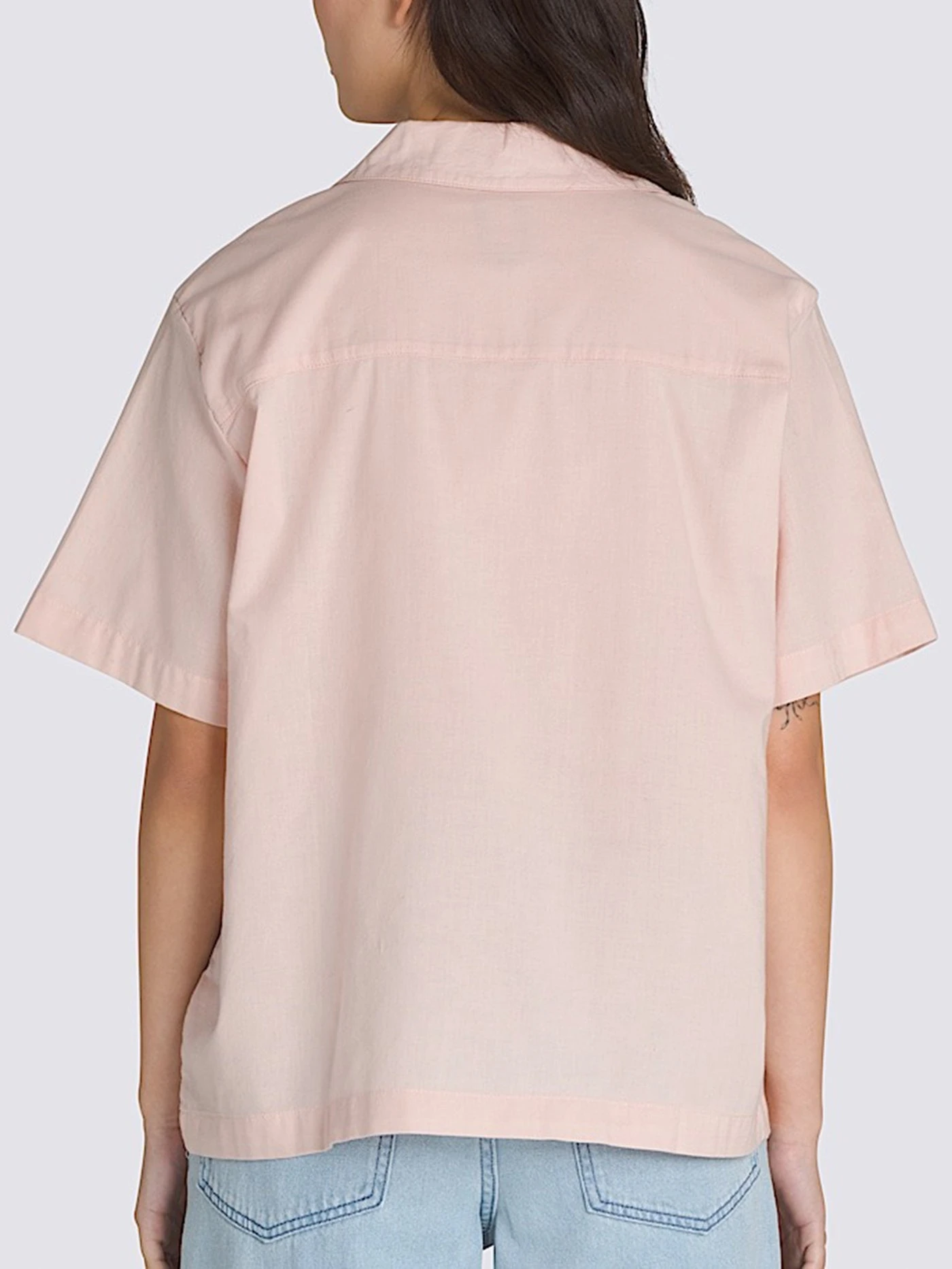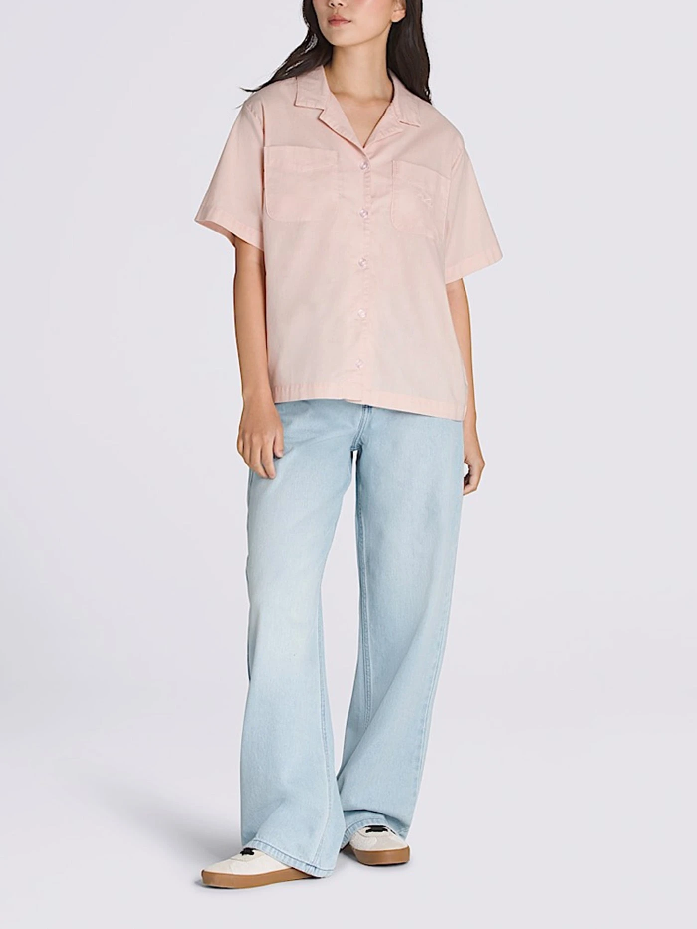 The Cassidy Camp Shirt is a sheer, retro-style short-sleeve summary down shirt, updated with a slubby woven fabrication for a unique uneven texture. With a comfortable boxy fit, it’s finished with an embroidered scripted Vans® logo on the chest pocket.