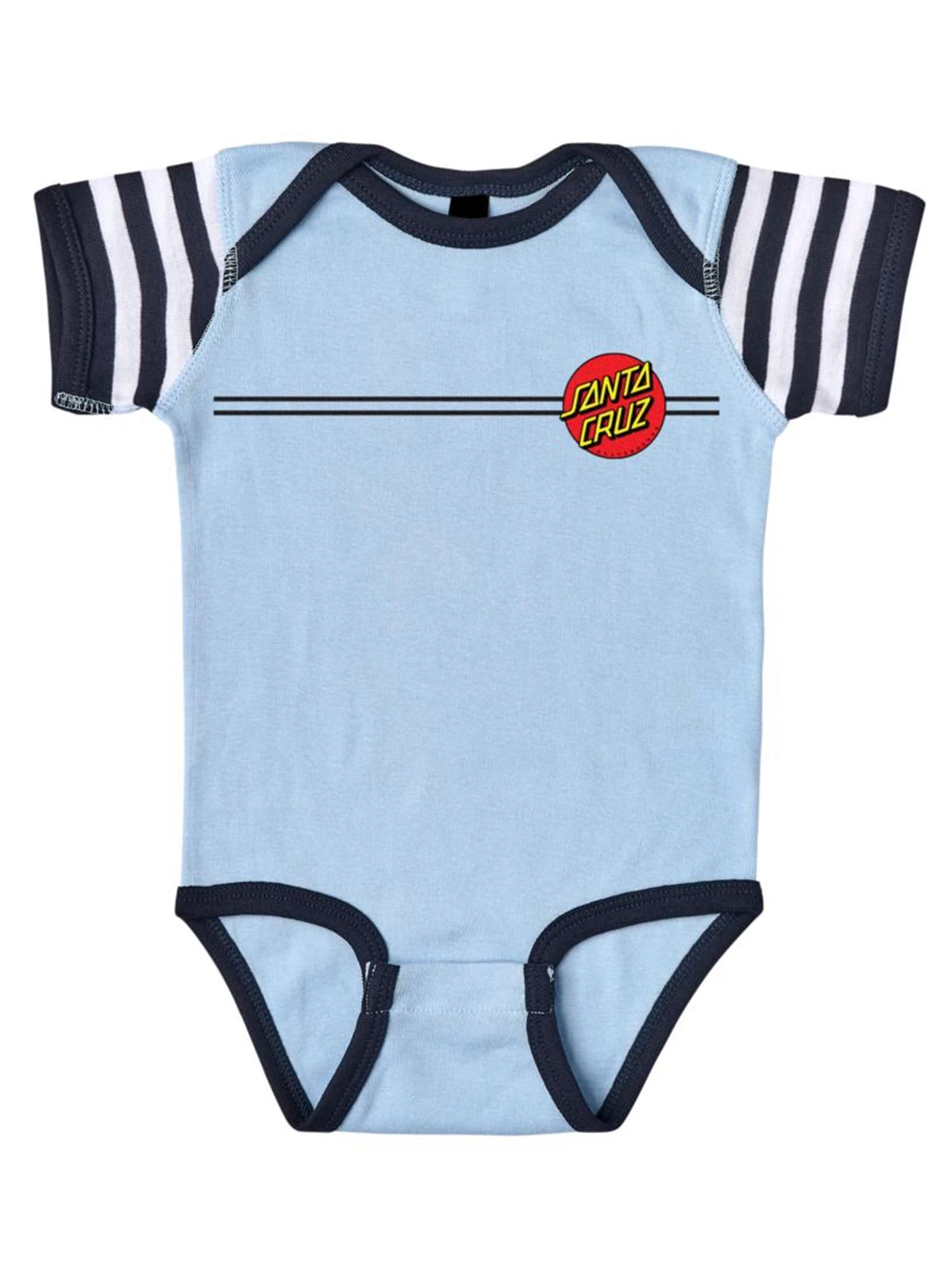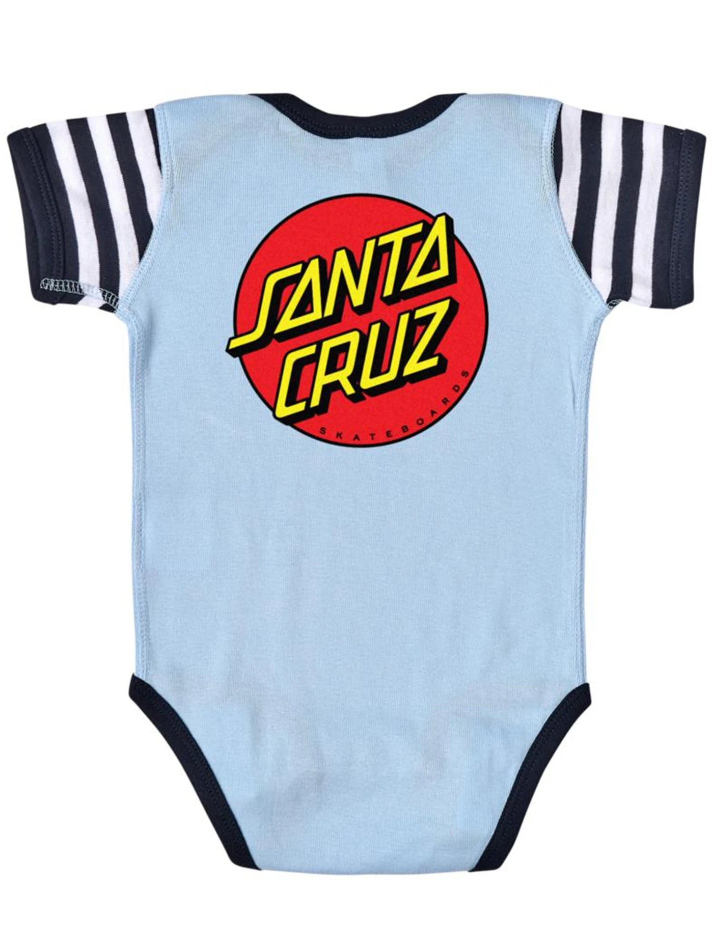 Style out your little one in the latest infant apparel from Santa Cruz Skateboards. The Santa Cruz Classic Dot Dot rib knit one piece features small front and large back Classic Dot logos printed in soft hand ink. CPSIA compliant. Santa Cruz has been manufacturing the best skateboards and apparel since 1973. Innovative skateboards and artwork from the beginning ’til the end.