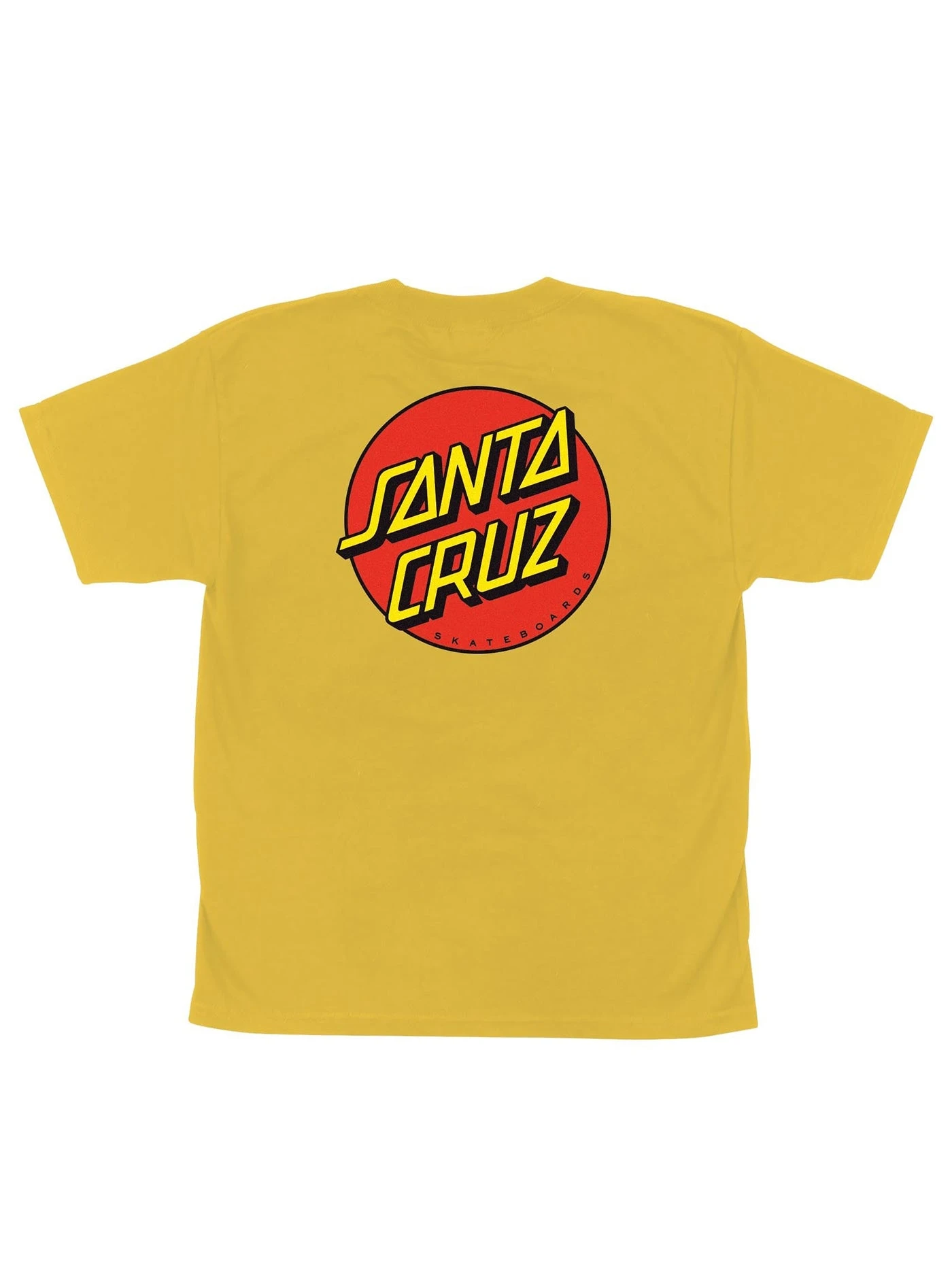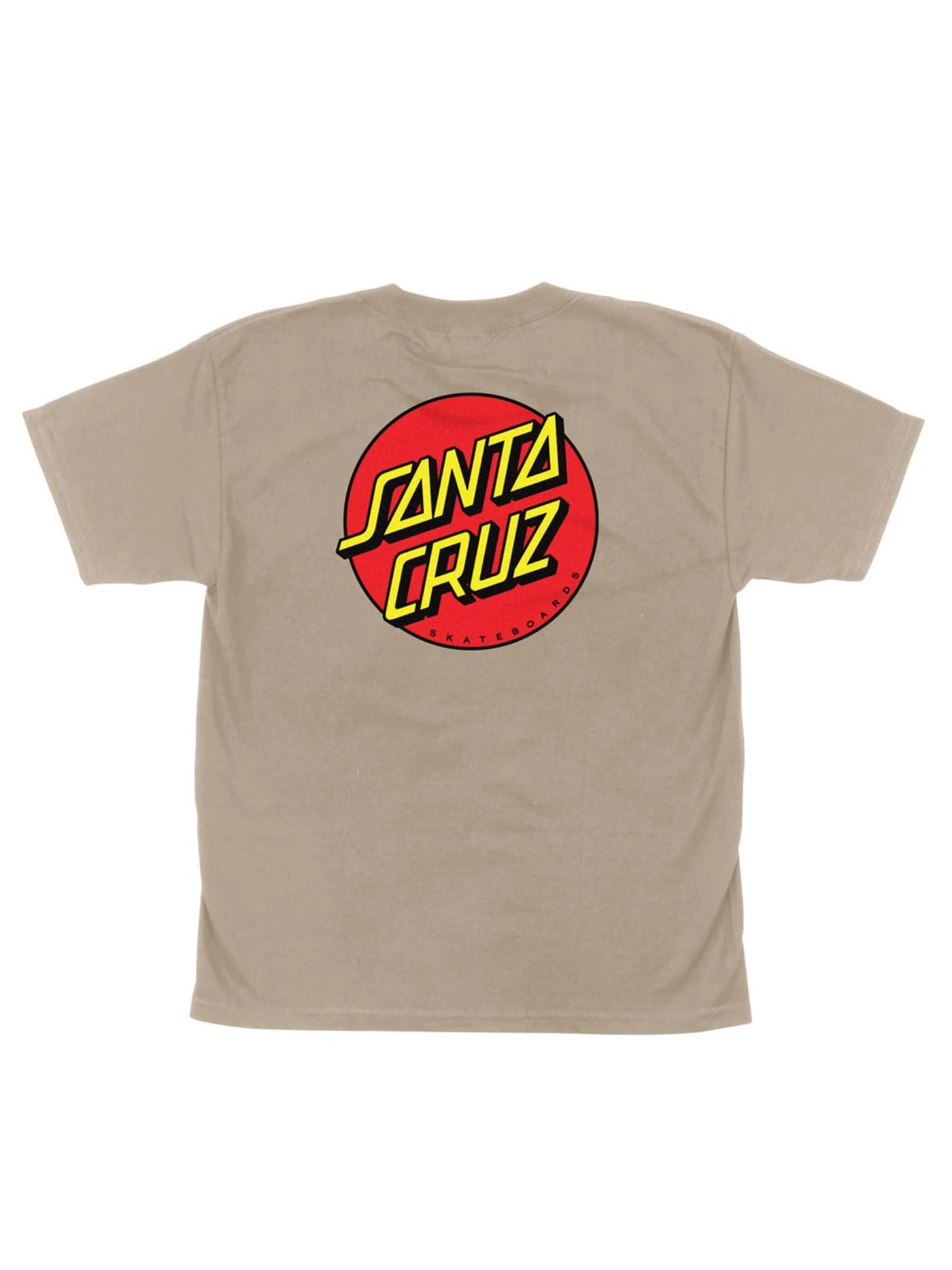 Roll up and stand out in the latest youth apparel and accessories from Santa Cruz Skateboards. The Santa Cruz Classic Dot youth short sleeve t-shirt features small front and large back Santa Cruz Classic Dot logos printed in soft hand ink.