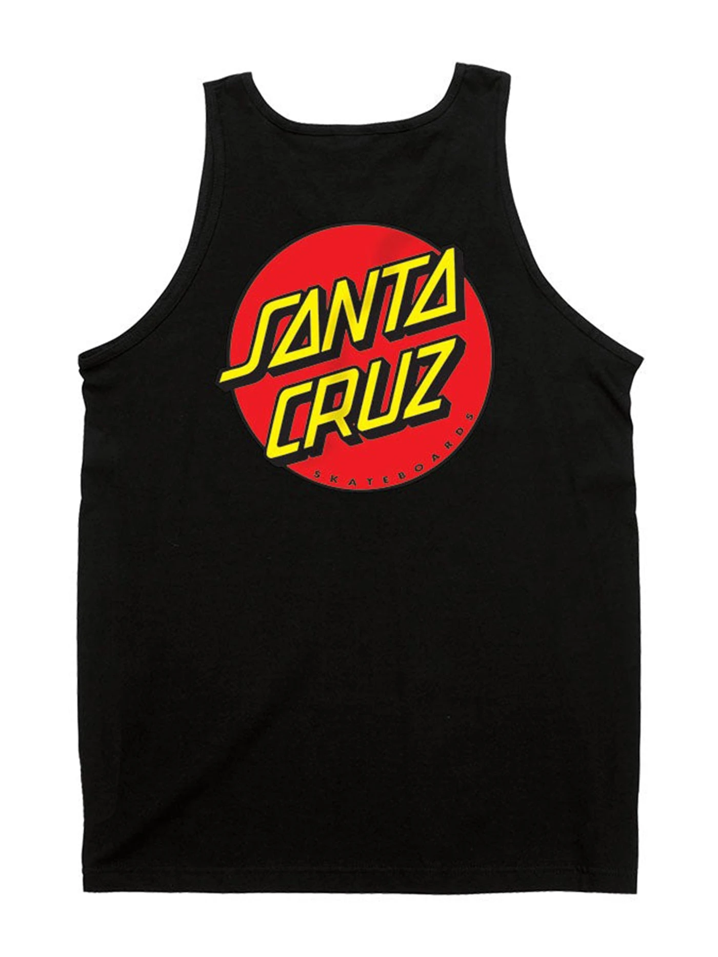Stand out in the latest t-shirts and apparel from Santa Cruz Skateboards. The Classic Dot men’s jersey tank features large front and large back Classic Dot Logos printed in soft hand ink. Santa Cruz has been manufacturing the best skateboards and apparel since 1973. Innovative skateboards and artwork from the beginning ’til the end.