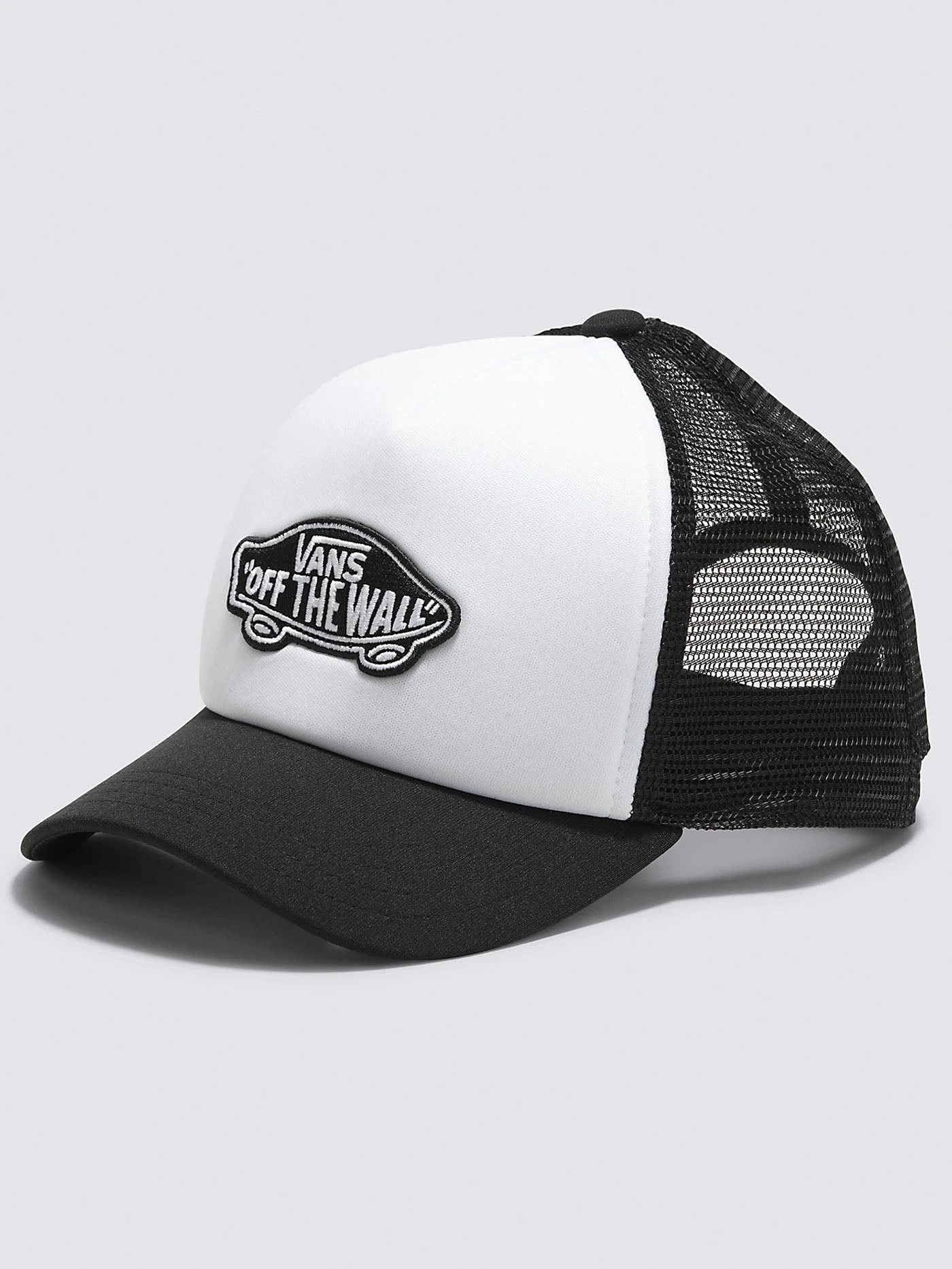 The Kids Classic Patch Curved Bill Trucker Hat features a mesh back with adjustable strap closure for breathability and wearbility, curved bill for a worn-in feel, and classic Vans® patch on front.