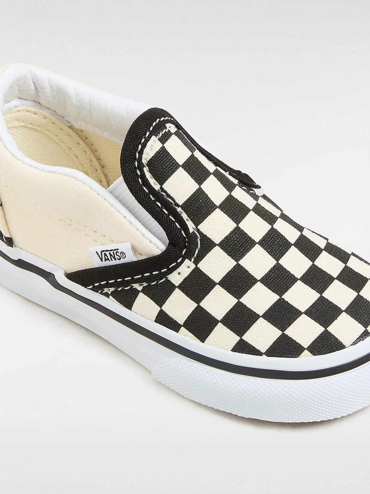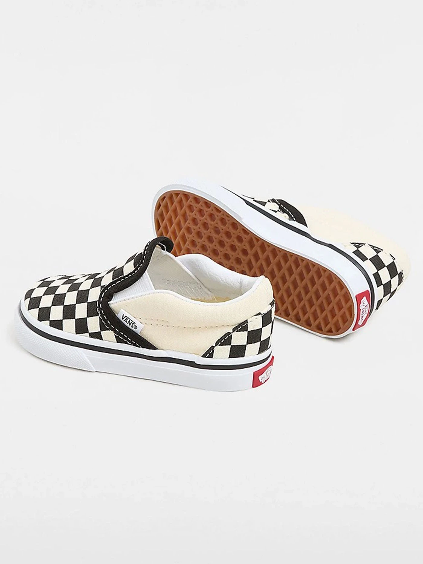 A low profile, slip-on shoe, the Vans Classic Slip-On has elastic side accents for easy access, and padded collars for extra comfort. It also features the Vans flag label and signature waffle outsoles for firmer grip.