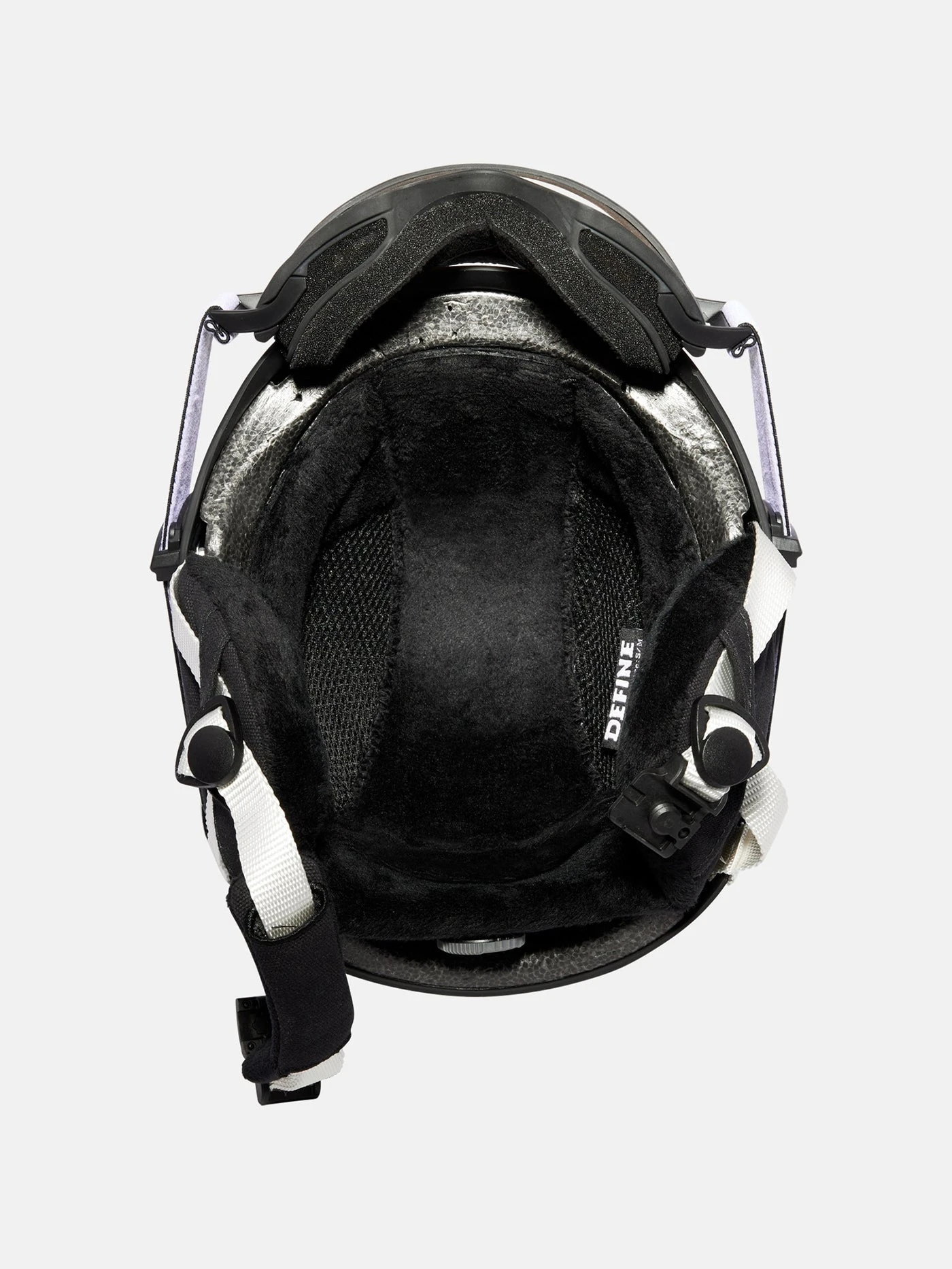 The kids’ Anon Define Helmet simplifies the experience for kids and parents alike by integrating goggles into the helmet so nothing falls off or gets lost. The kid-proof design includes a hardshell exterior for everyday durability. A 180° BOA® Fit System offers quick, micro-adjustable fit with the turn of a dial, and fixed vents keep the air moving for fog-free goggles and all-day comfort. Our strapper-keeper technology incorporates the goggle right into the helmet for a perfect fit around small faces. Includes a protective microfleece tote bag for storage and transport.
