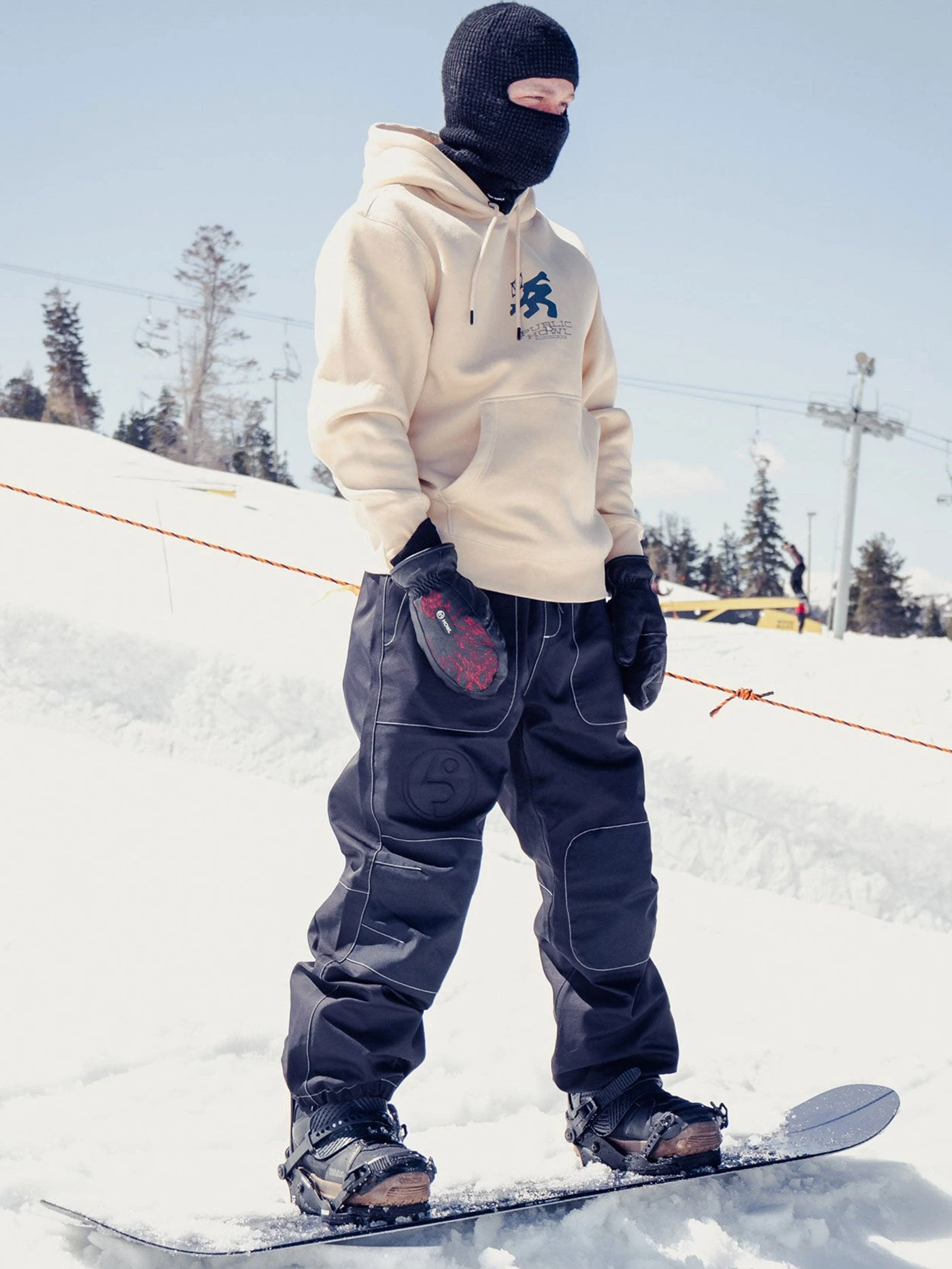 The DWR Hoodie, a highly technical garment designed to keep you dry during your time on the slopes, allowing you to extend your mountain adventures. Featuring a pass holder on the sleeve and convenient thumb holes for added comfort, this hoodie ensures both functionality and style, enhancing your winter sports experience. Additionally, we offer the DWR Hoodie in a collaborative colorway with Public Snowboards.