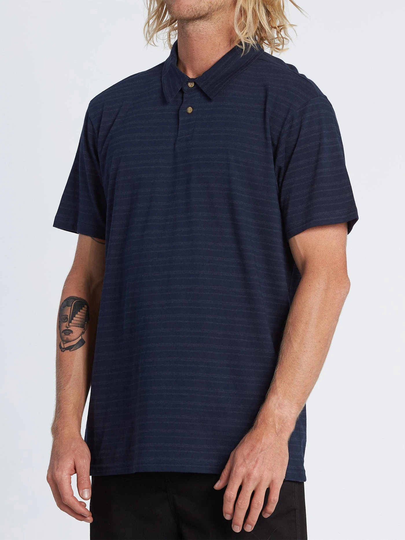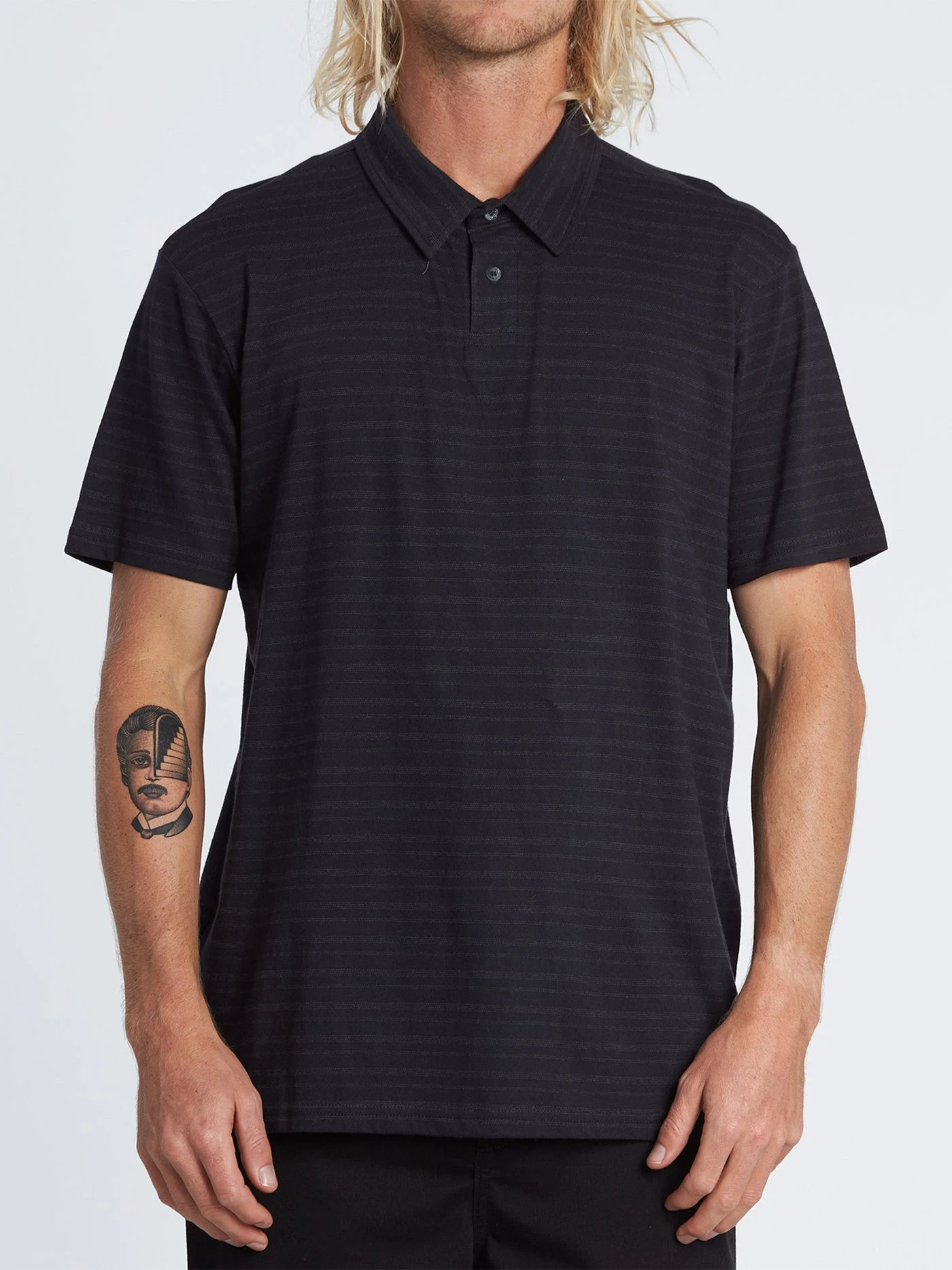A weekday worthy with weekend comfort, the Essential Polo Shirt is built from premium jersey knit with a soft wash to let the chill really settle in. A staple polo shirt with a tonal jacquard stripe pattern, the Essential is finished with a chest pocket and logo label at the hem.