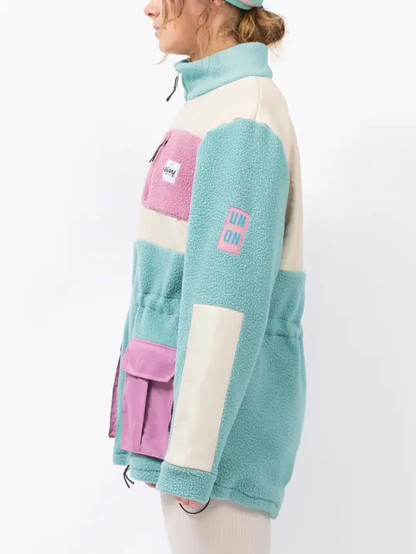 Miami colored fleece parka in soft and warming sherpa fleece in dual layer, with fabric details on the chest, pockets and sleeves. Equipped with large pockets and a drawstring at the waist and at the bottom, to easily change the style of the jacket. The jacket works both as an outer garment during autumn days and milder weather or as an intermediate layer for extra warmth in winter.