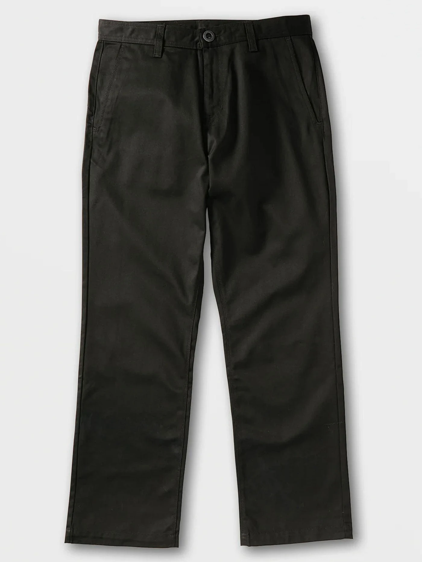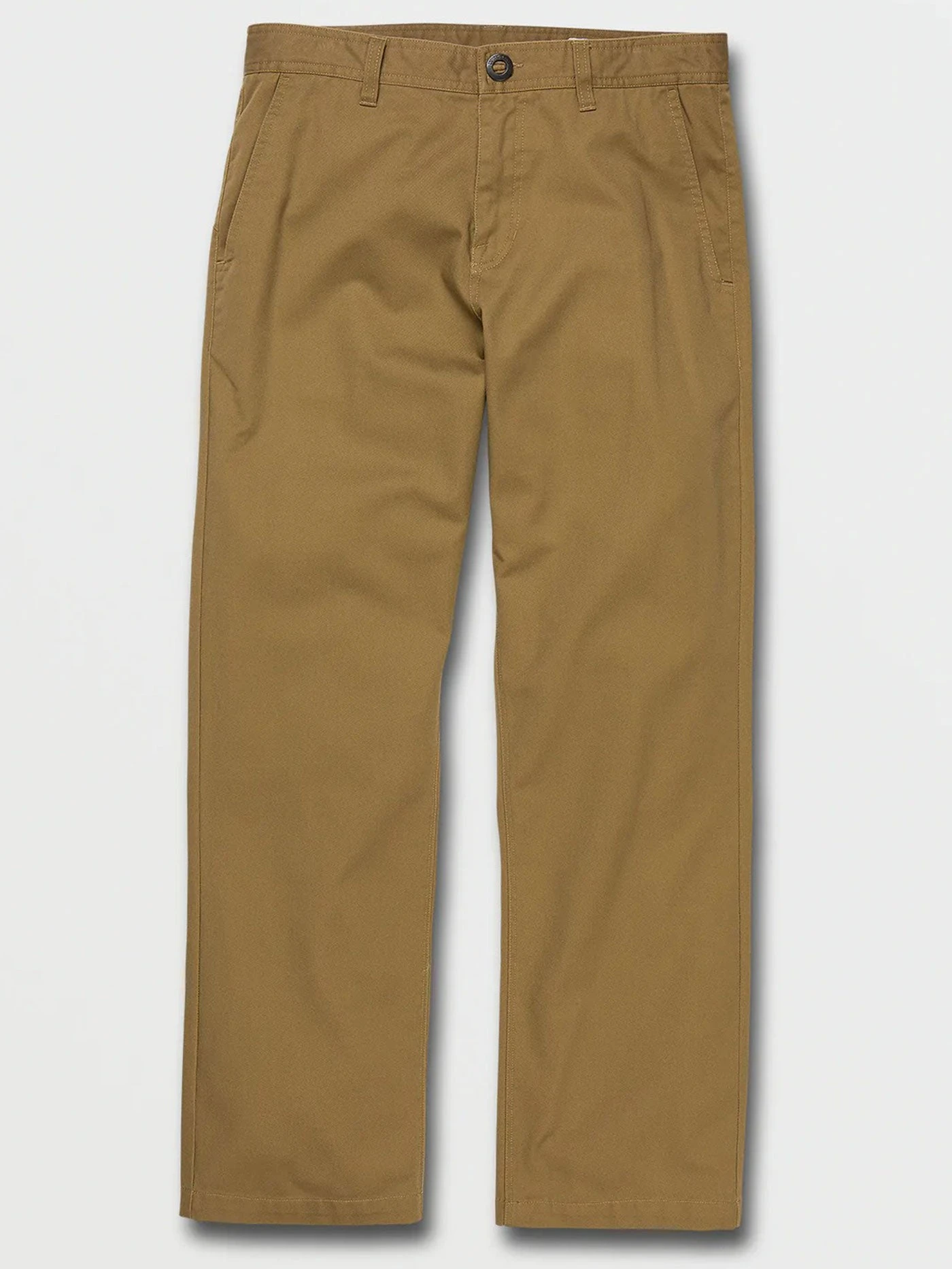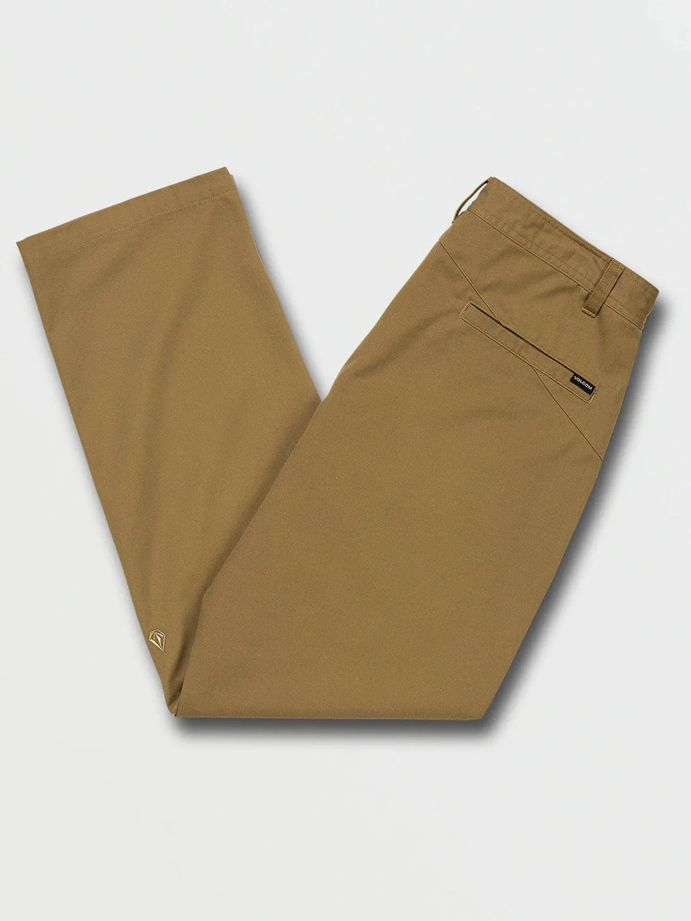 Introducing the Frickin Skate Chino, the ultra-durable Stone Made cousin of the Frickin Modern Stretch Chino. With the Frickin Skate Chino we’ve doubled the weight of the pant’s cotton twill fabric that’s thicker and more durable, opened up the fit to be a little roomier and increased the leg opening to 18″. We also we snuck a Stone hit inside the cuff that appears when you roll up them up, which is definitely going pop off the page when captured with a fisheye lens. Of course, you can expect the same reliable fit and feel as our regular chinos and signature details such as Volcomโs asymmetric back yoke, metal buckle summary, back welt pockets and a stone embroidery on the left leg.