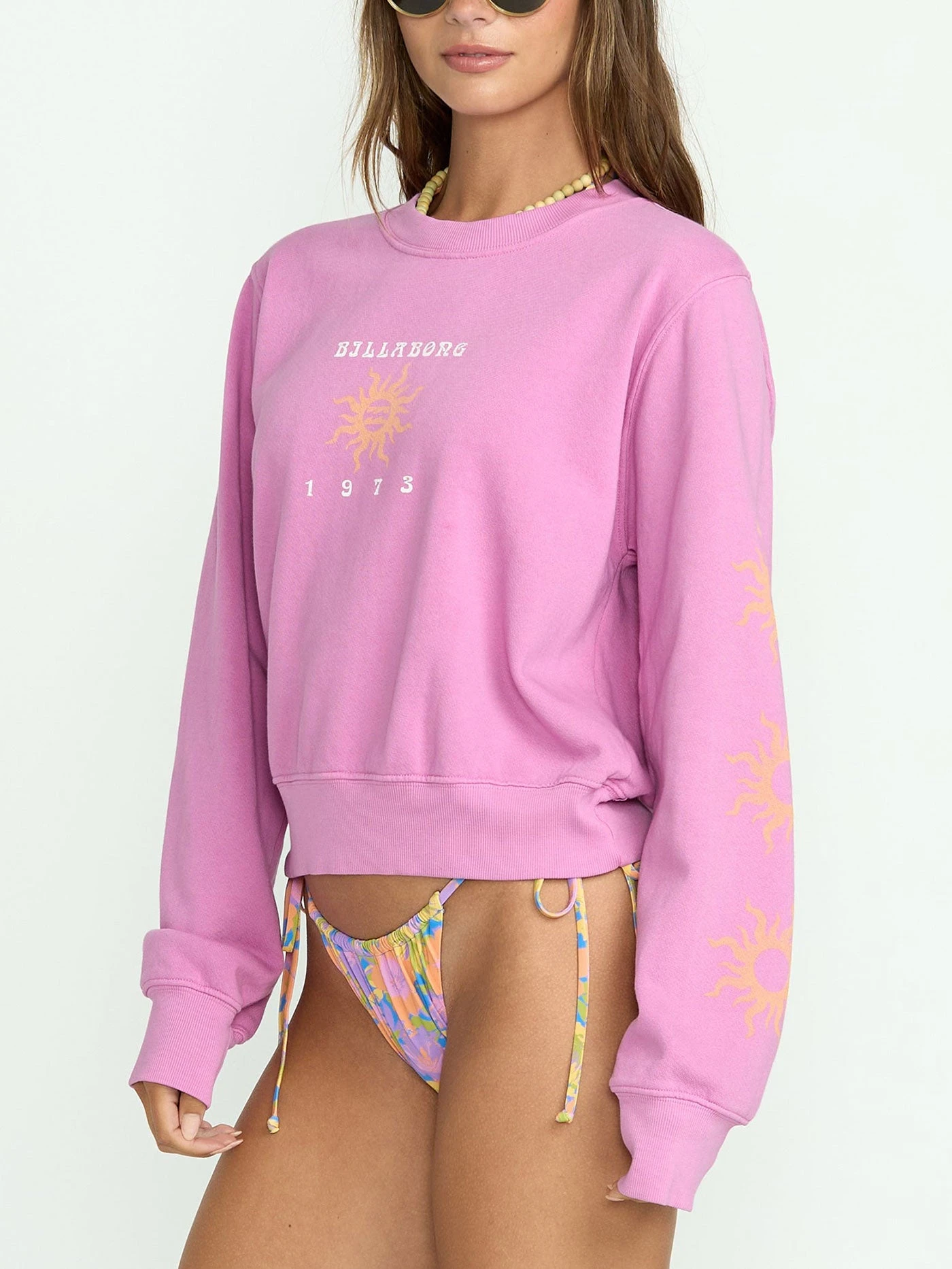 Our From Paradise Crewneck Sweatshirt blends 80% cotton, 20% polyester fleece into a pigment-dyed pullover with relaxed vibes and vintage fading. Screenprint details round out this cozy, casual crewneck.