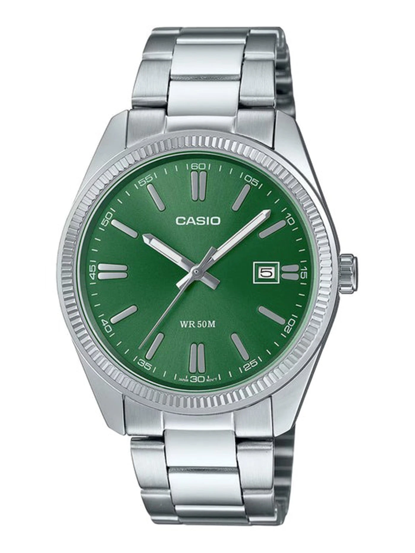 Introducing the Casio MTP-1302D-3AV Men’s Watch, a perfect blend of style and functionality. This exquisite green dial watch from Casio’s collection embodies timeless elegance, making it a must-have accessory for the modern man.