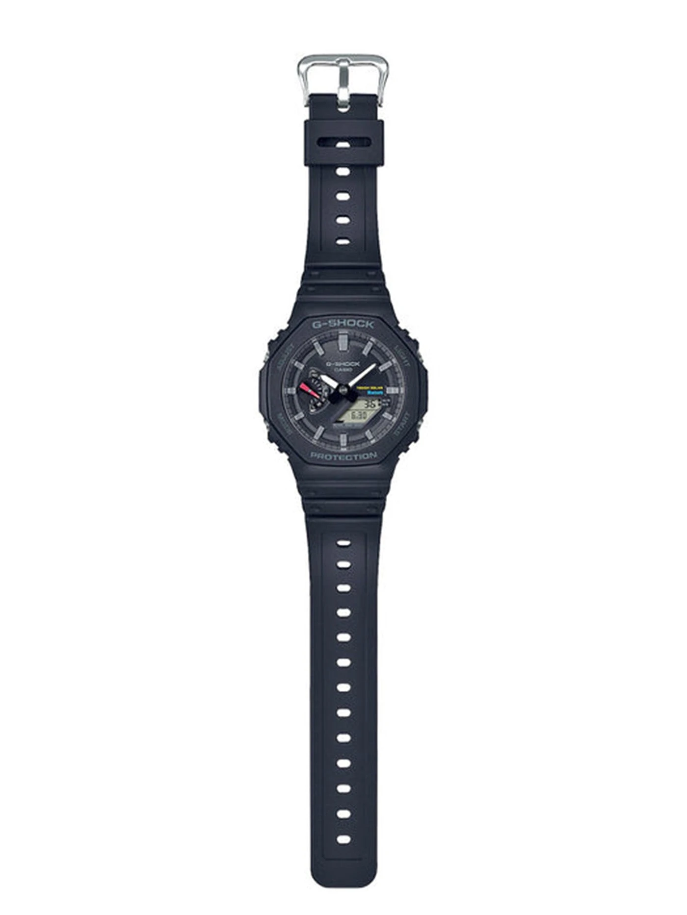 While maintaining the iconic octagonal form of the GA2100 inherited from the very first G-SHOCK, the GAB2100 now also has Smartphone Link and Tough Solar power capabilities. It also employs the Carbon Core Guard structure to preserve a similar fit on the wrist as the original model.