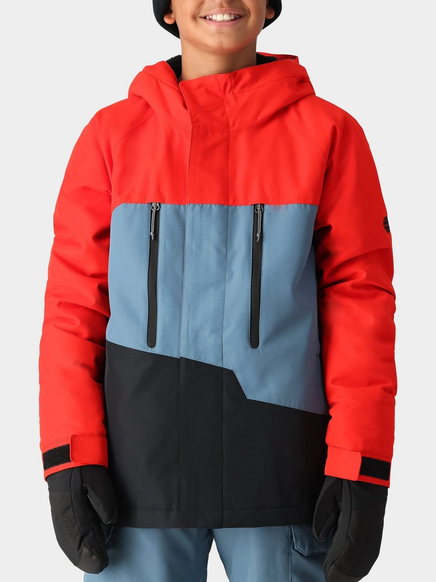 Cut from the same cloth as our adult version, geometric design clashes with classic outerwear. Jagged lines, a nod to the 2000s, create a tri-tone style that bridges past and future. Dual chest vents provide ample airflow on chairlifts and while riding or skiing and a full a full suite of 686 features packs in all the tech you need. The Geo features the 686 Youth Evolution™ System to grow the sleeve a full size length and keep your grom going for multiple seasons.