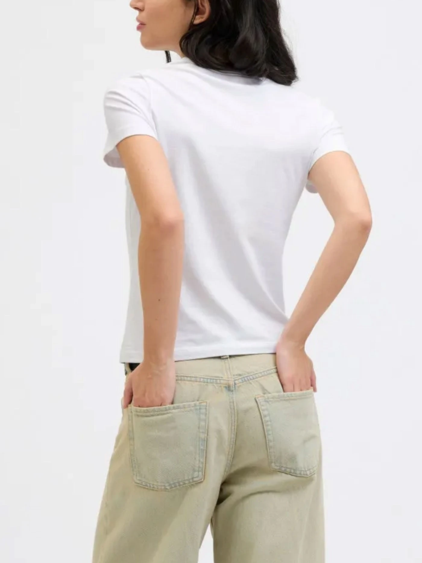 This basic T-shirt is a wardrobe essential that works well with jeans, shorts, and trousers. Combed jersey is stretchy and has a soft feel, perfect for everyday wear.