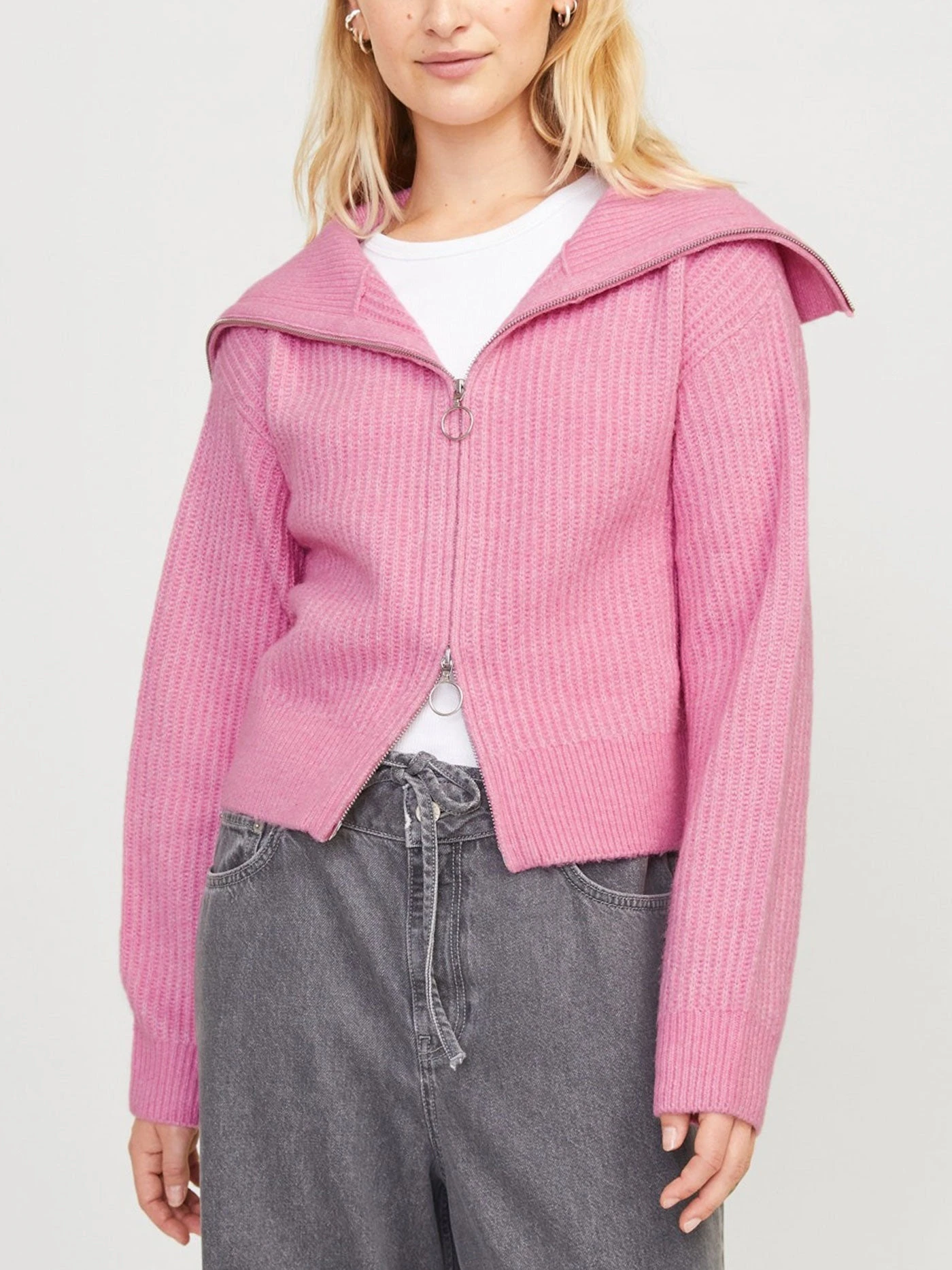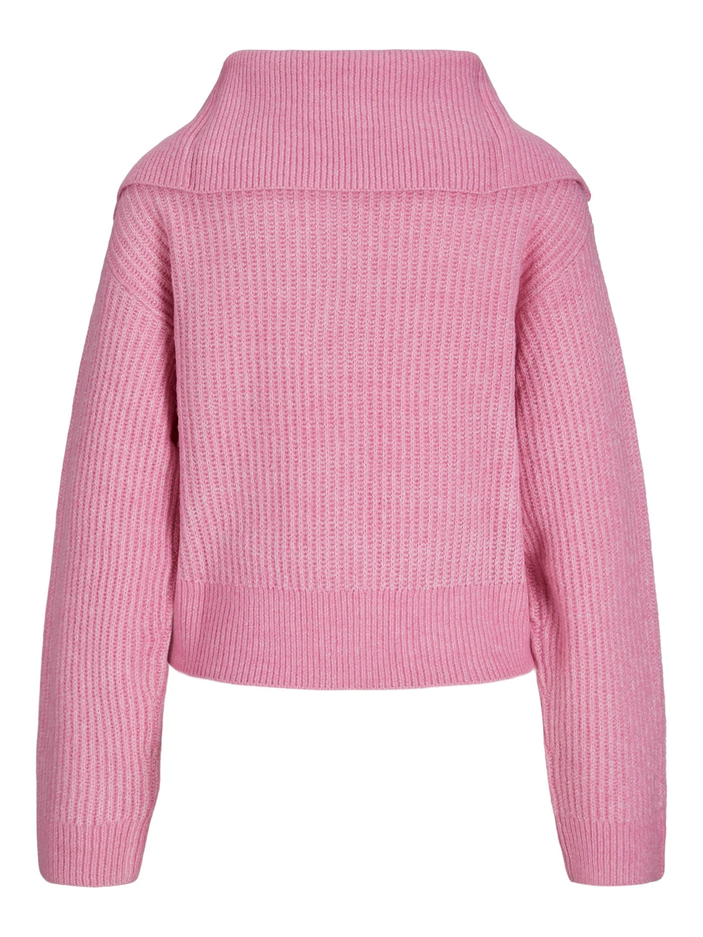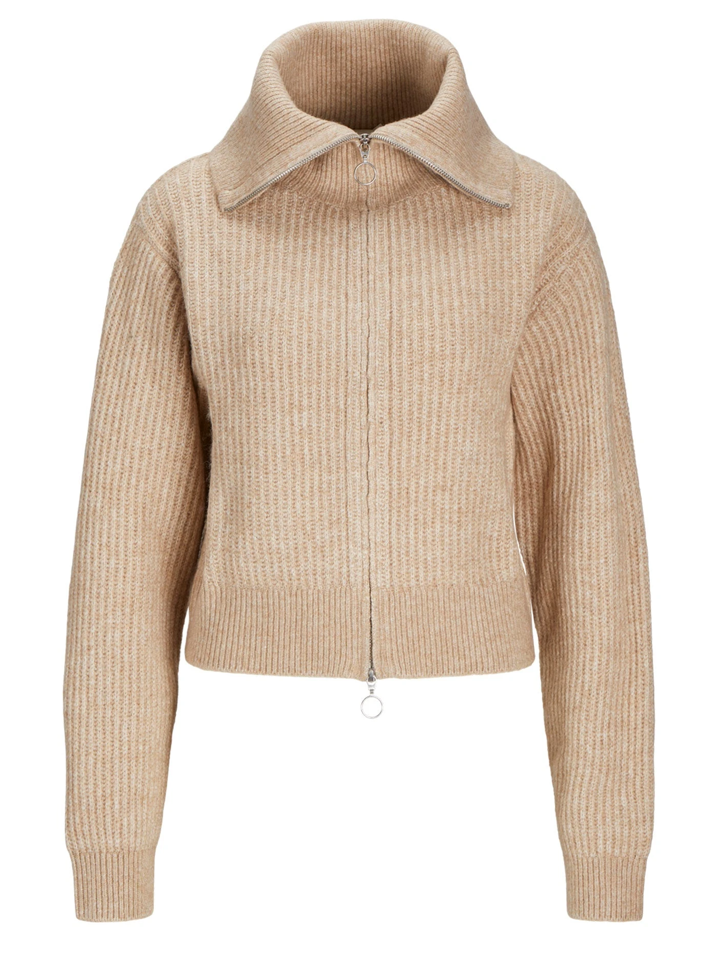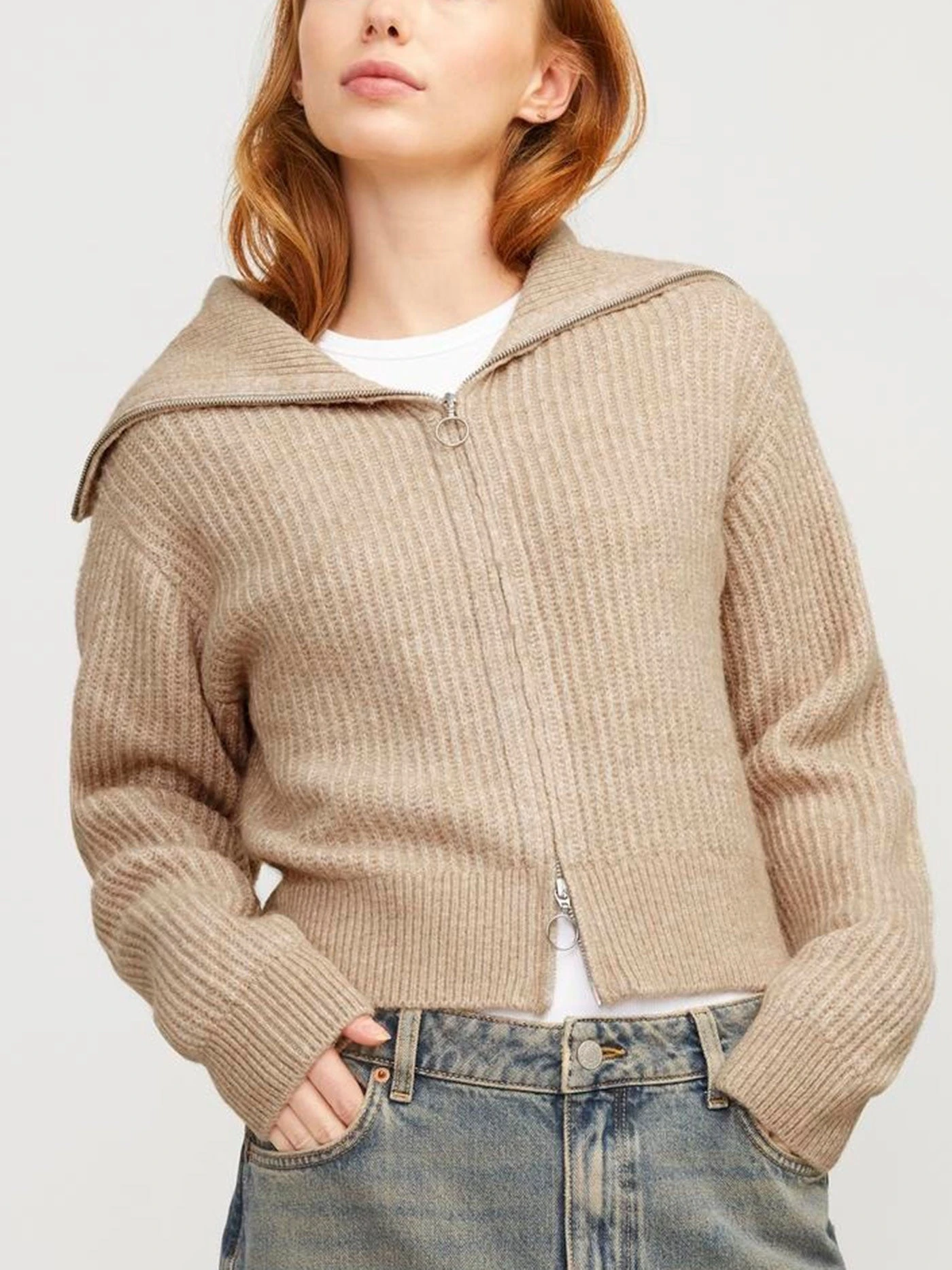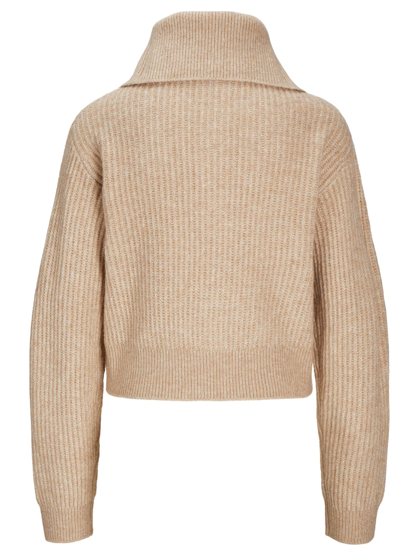 This layering piece works well with a coat, or shacket, but it can also stand alone. Rib knit has vertical ridges and is very stretchy for a comfortable feel.
