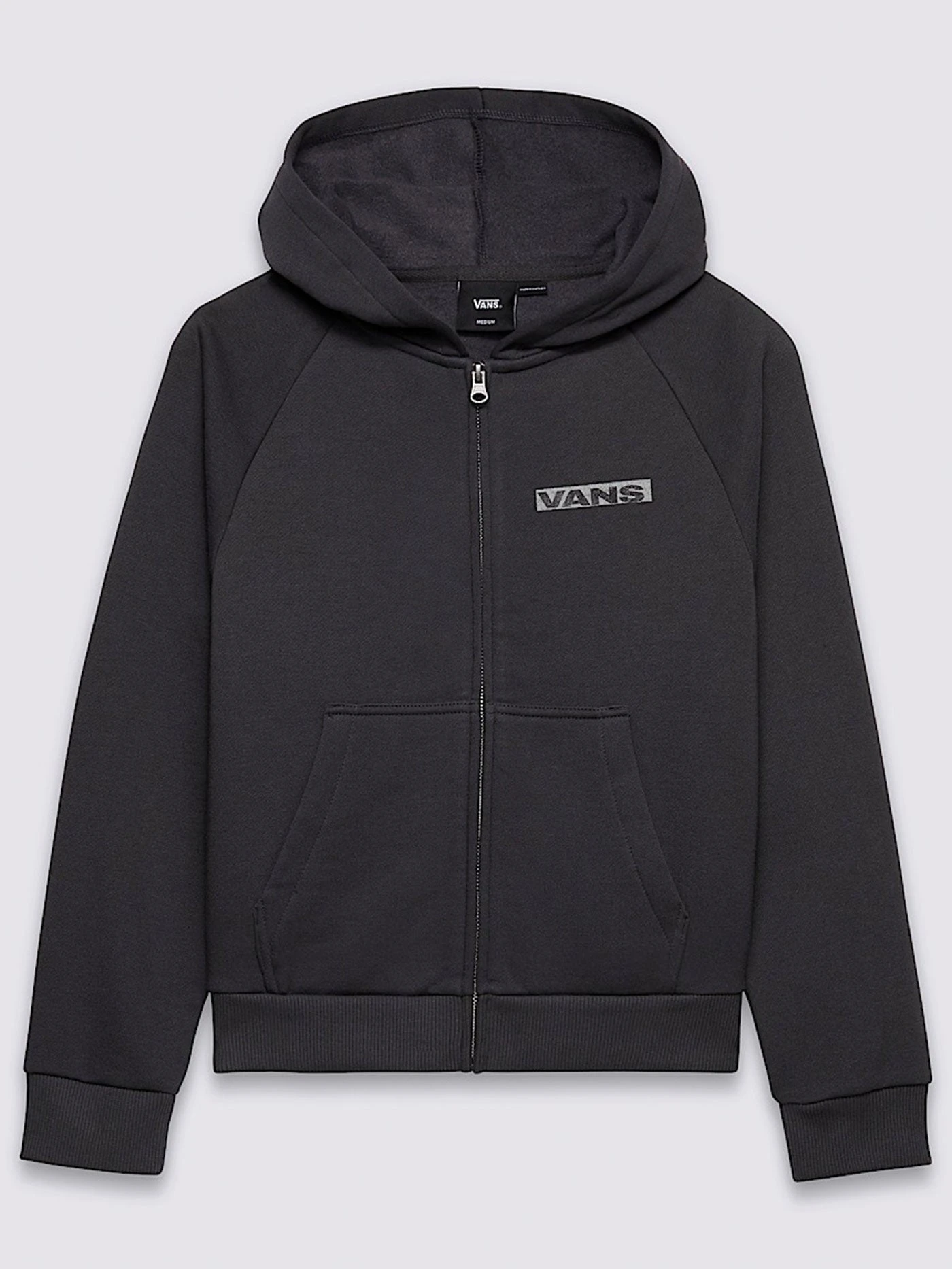 The Kids Greatest Hits Zip Hoodie is a classic zip front hoodie with front hand pockets. It also features ribbed details with a graphic of a Vans® logo on the front, and a larger street style graphic on the back.
