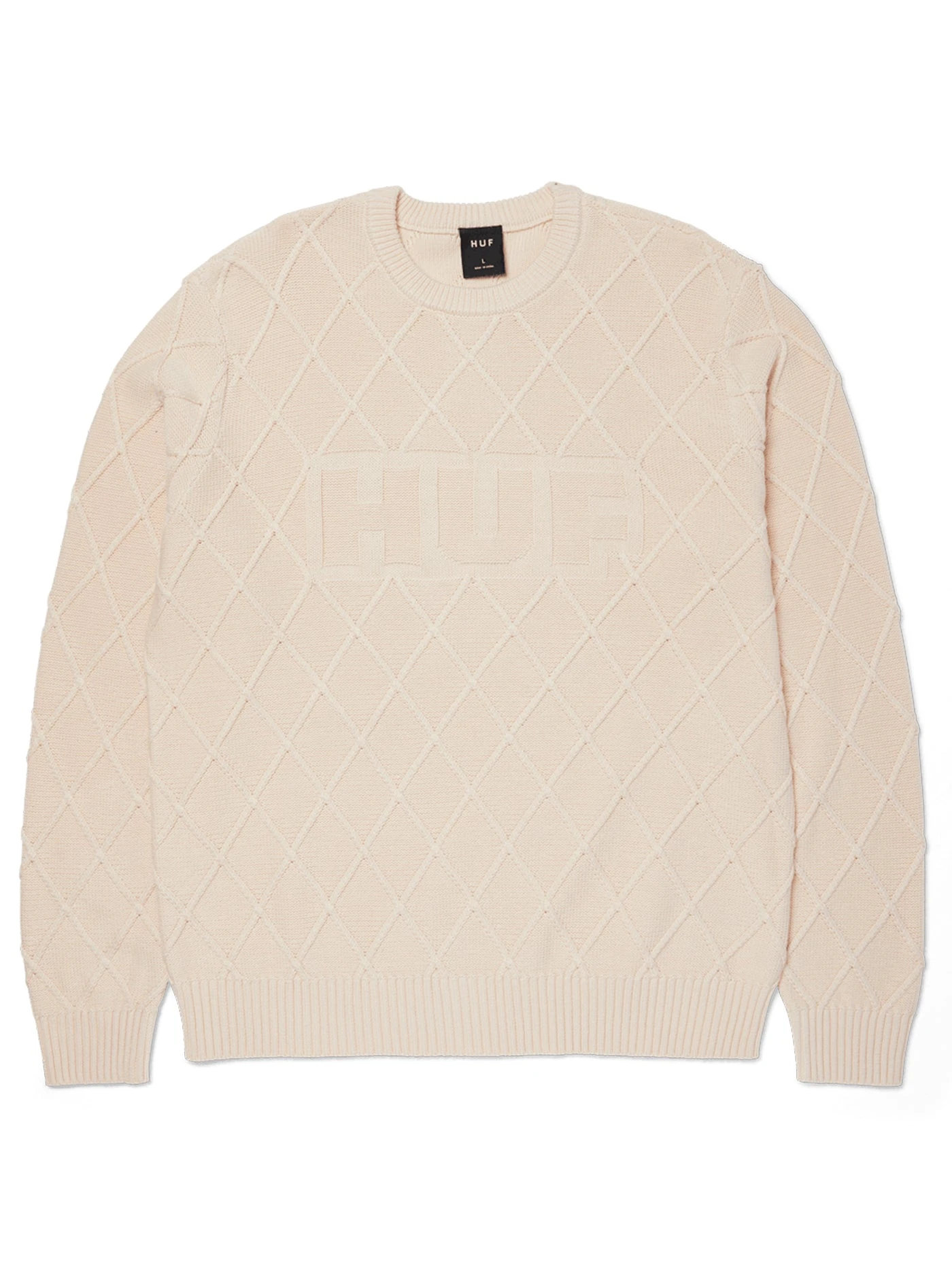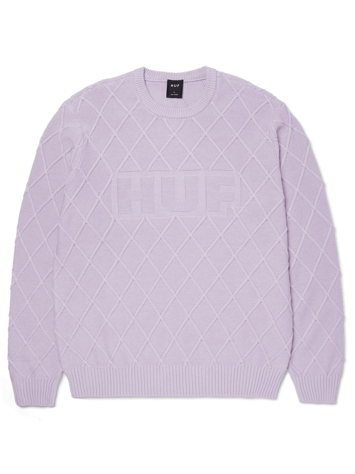 Mixing a custom fence repeat pattern with HUF graphics, the Grid Crewneck Sweater features a 100% cotton construction with 3D jacquard-knit HUF logo.