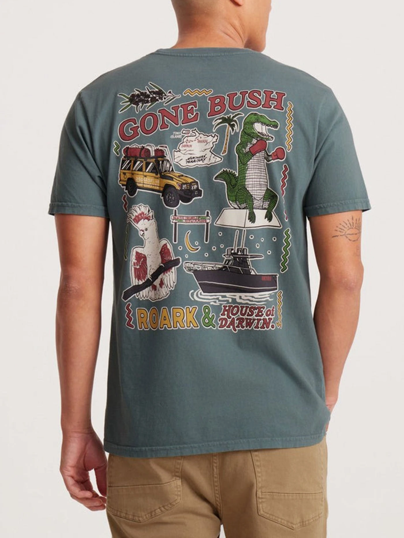 Based in Australia’s Northern Territory, House of Darwin is a clothing brand that exists to inspire, educate, and cultivate change within the two worlds of Australia. Roark is proud to present this Postcard tee featuring House of Darwin artwork. A portion of all proceeds from the Roark x House of Darwin Collection will be donated to the House of Darwin Foundation as part of Roark’s Safe Camp Initiative. Their mission is to empower local communities through sports, education, and social initiatives in Australia’s Northern Territory region.