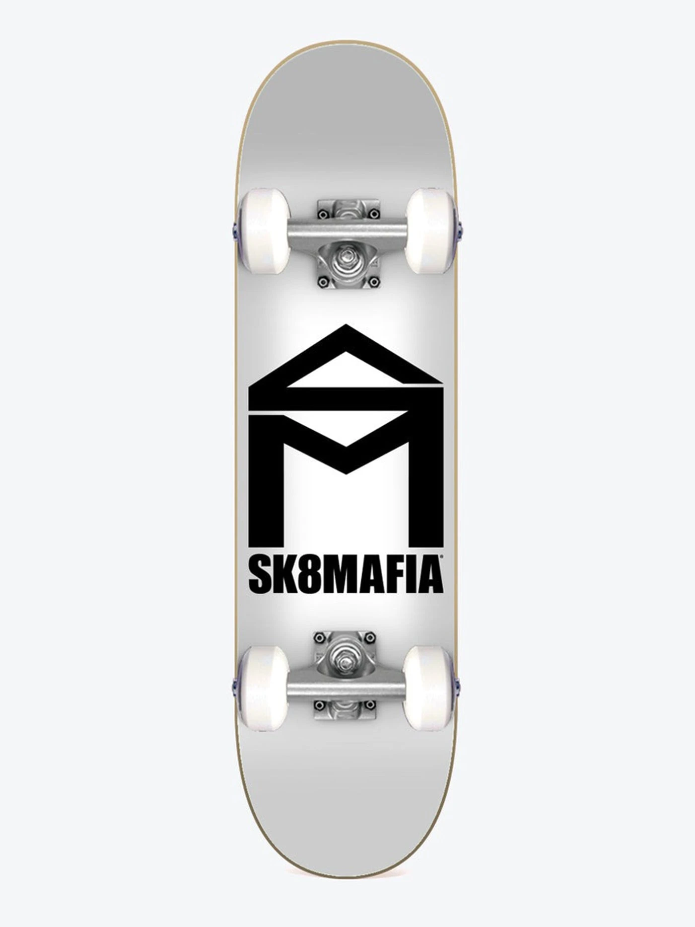 House Logo Micro White 6” Complete Skateboard by Sk8mafia.