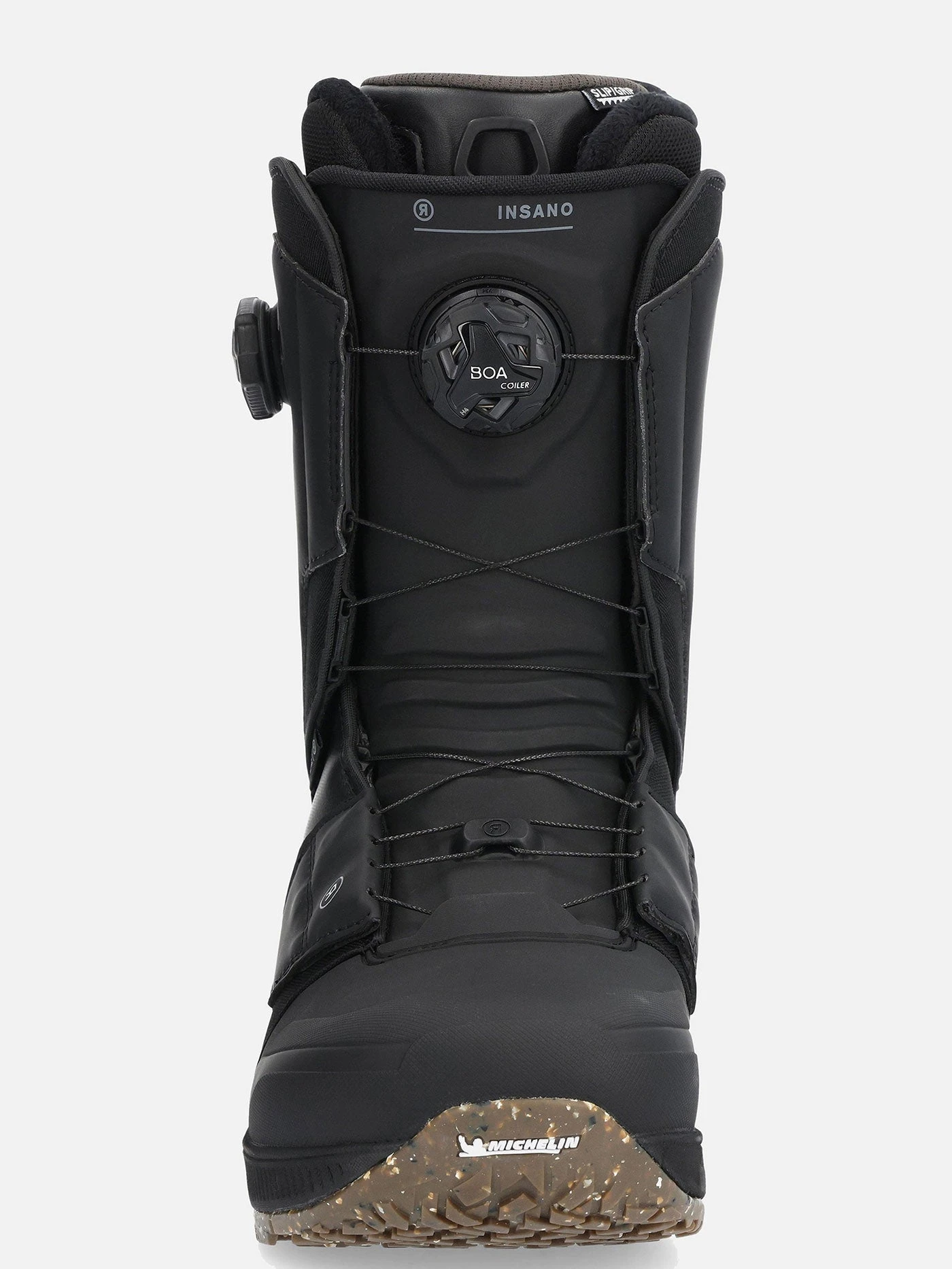 The Insano is quite literally how the name describes it. Fitted with our Intuition™ Center Tongue Dream Liner and BOA® Zonal Fit System, which provides a two-zone precise fit system for ultimate heel hold and stability. Flex Slime Tongue™ provides rebound and damping. The Michelin® Hybrid Traverse Outsole emphasizes grip and response underfoot, and coupled with the fact that the Insano is the stiffest boot in our line, this thing is built for all-mountain response all the time.