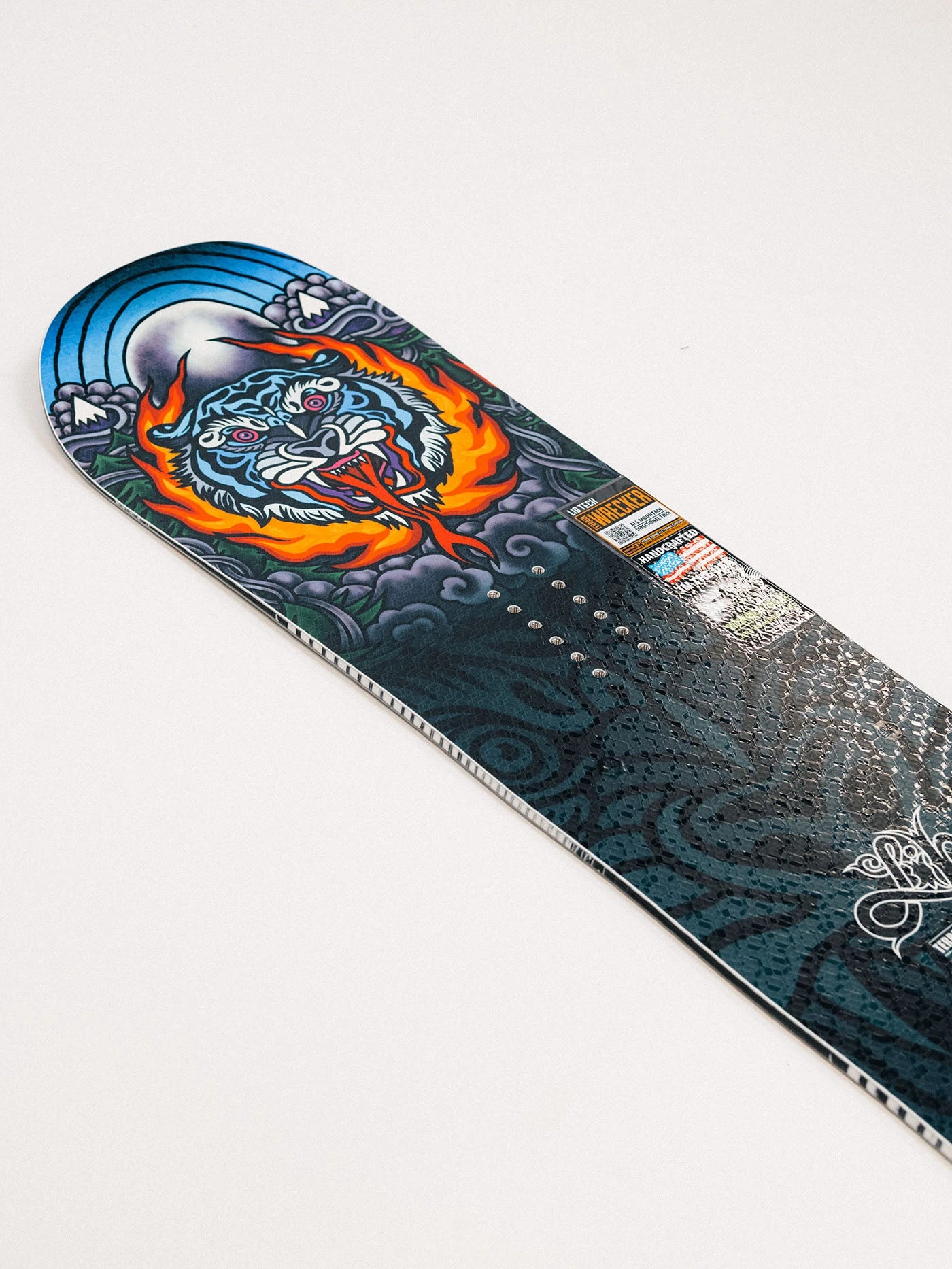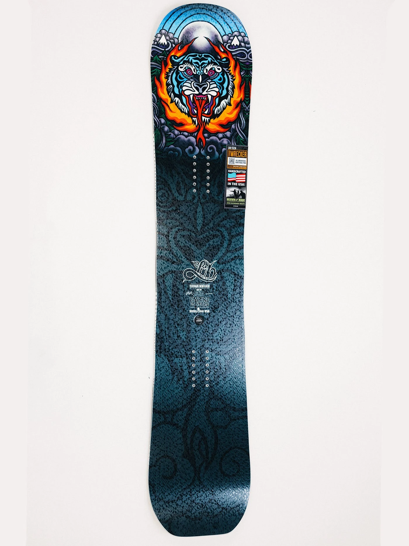 The Terrain Wrecker is designed to leave a path of destruction in its wake as you take your freestyle game and savagely apply it to the entire mountain. A directional shape with a floaty nose, tail that loves to be snatched and blocked with a twin chassis that rips in both directions. Technically perfect, hard charging dream board for resort berserkers.
