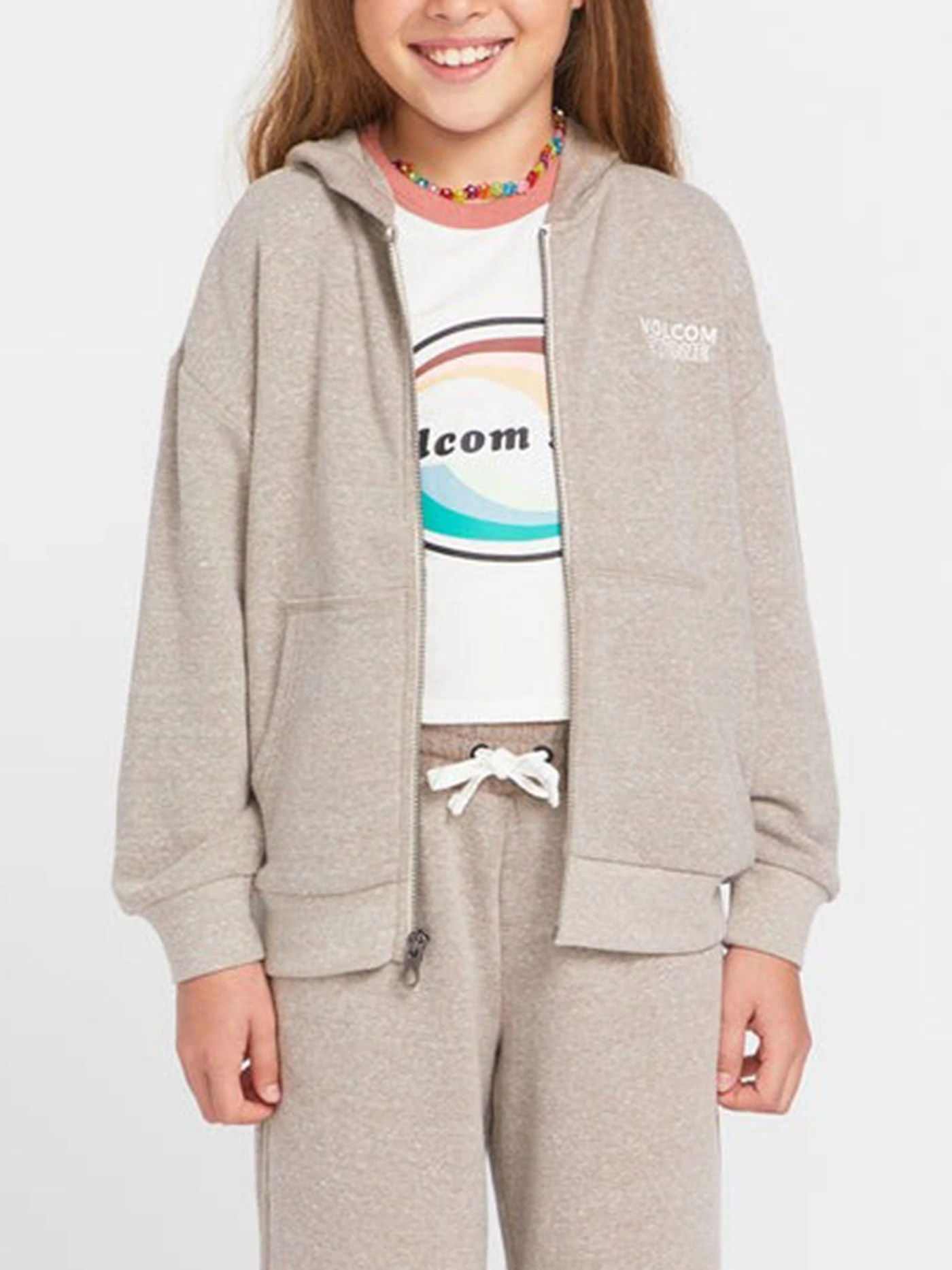 She’ll wrap herself in pure comfort with the Frenchie Zip Fleece. This soft, cozy fleece is made from a luxurious blend of cotton, viscose, rayon, and elastane, providing a soft, lived-in feel with a touch of stretch, while the kangaroo pocket will keep her hands warm. Featured here in grey.