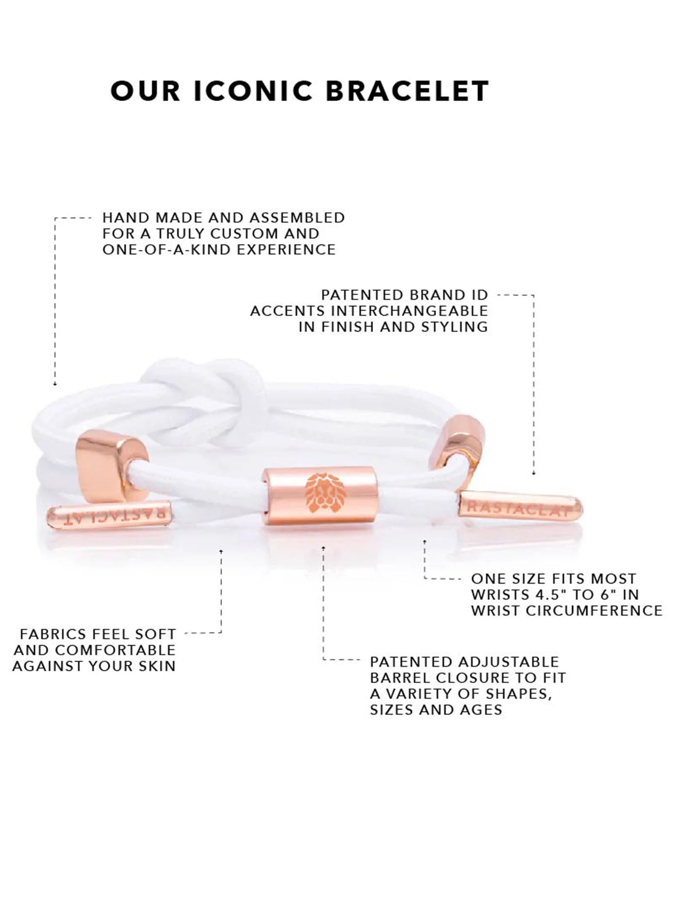 White small Knotaclat bracelet featuring rose gold electroplated hardware and contrast emblems.