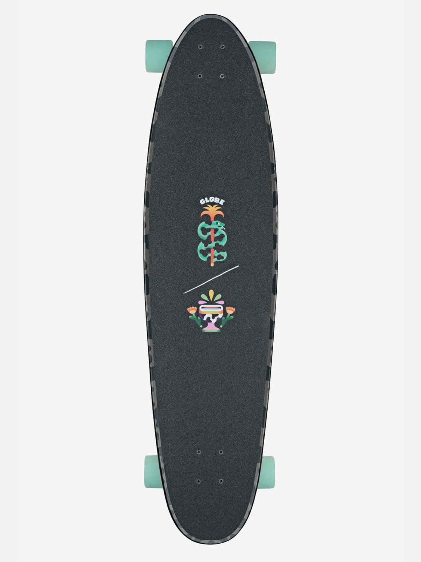 The Archer – Daybreak is a longer wheelbase, flexy 7-ply longboard which bounces through turns, on agile Hi-Rise magnesium Slant trucks and 78a Dragster wheels with graphics from featured artist Jannik Stegen.