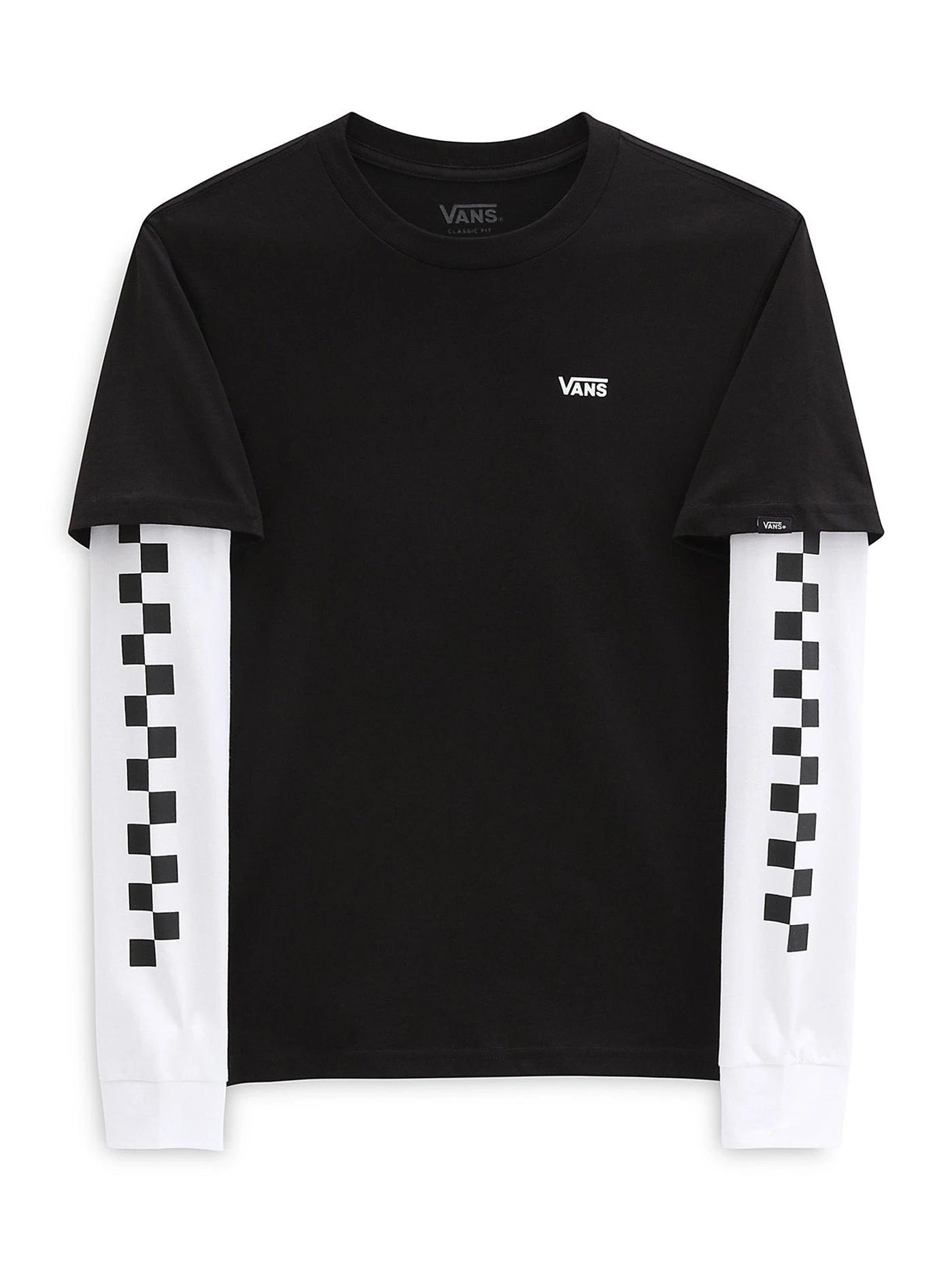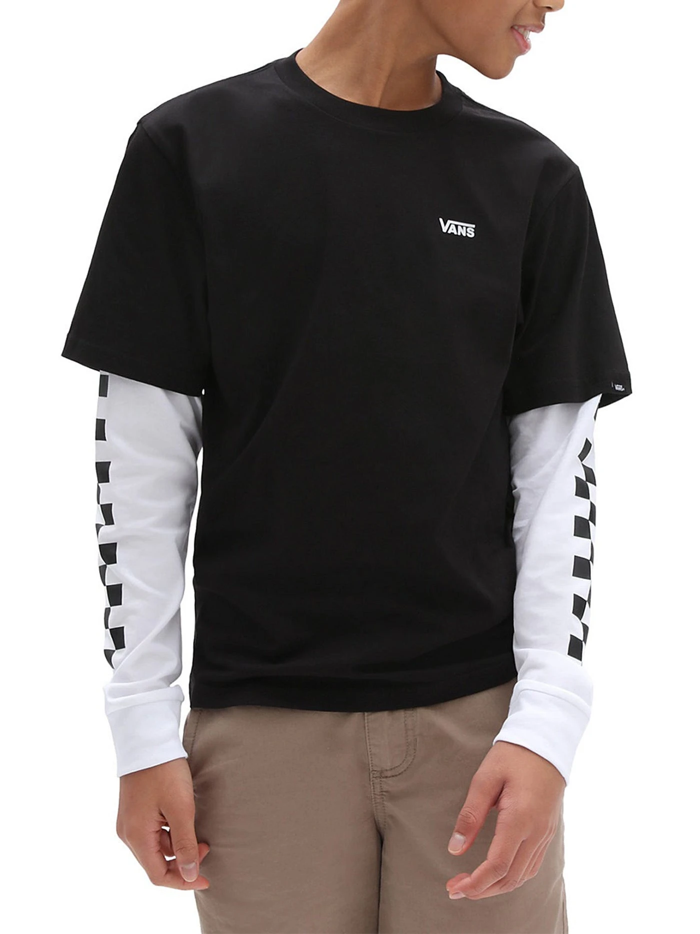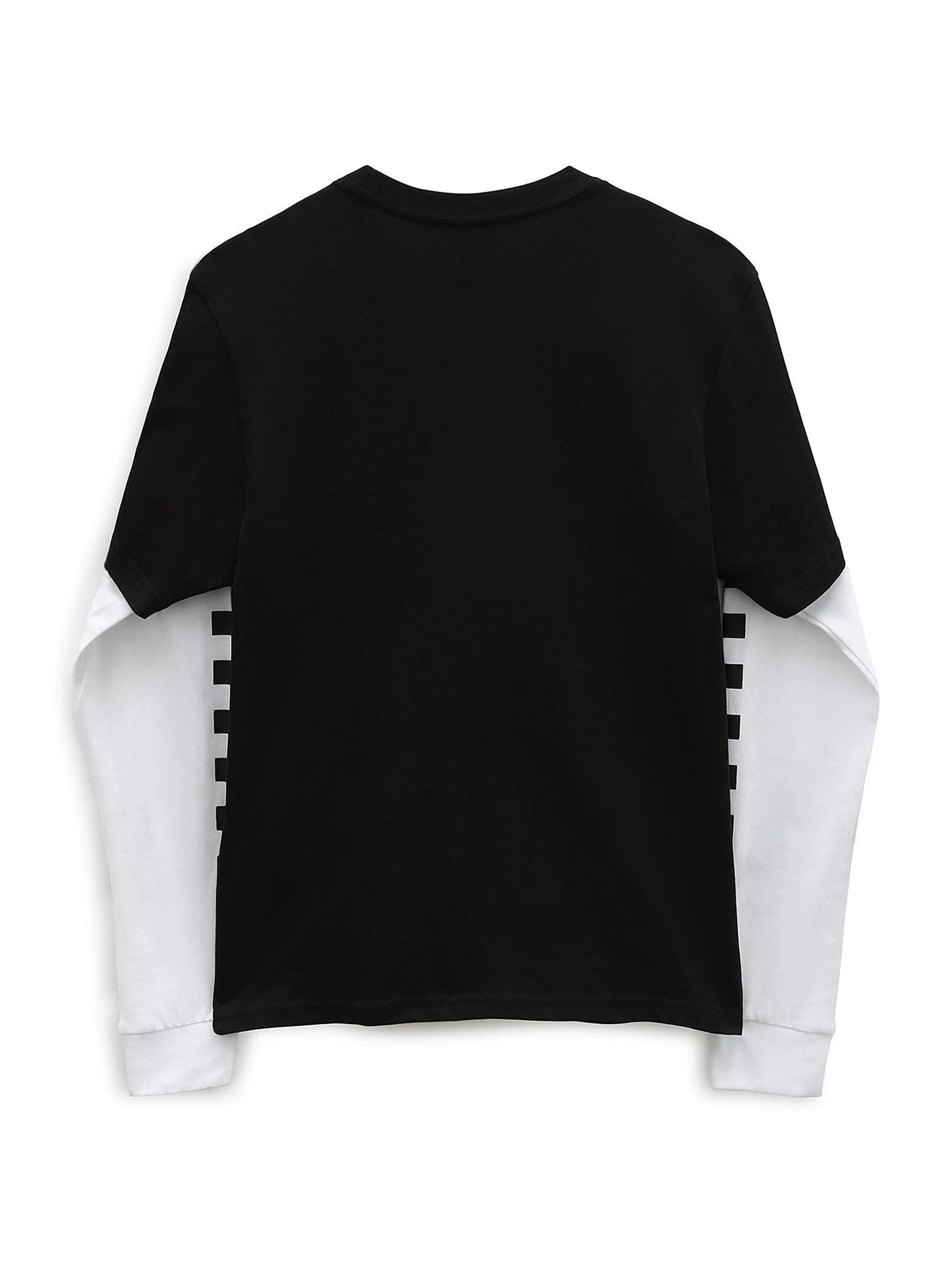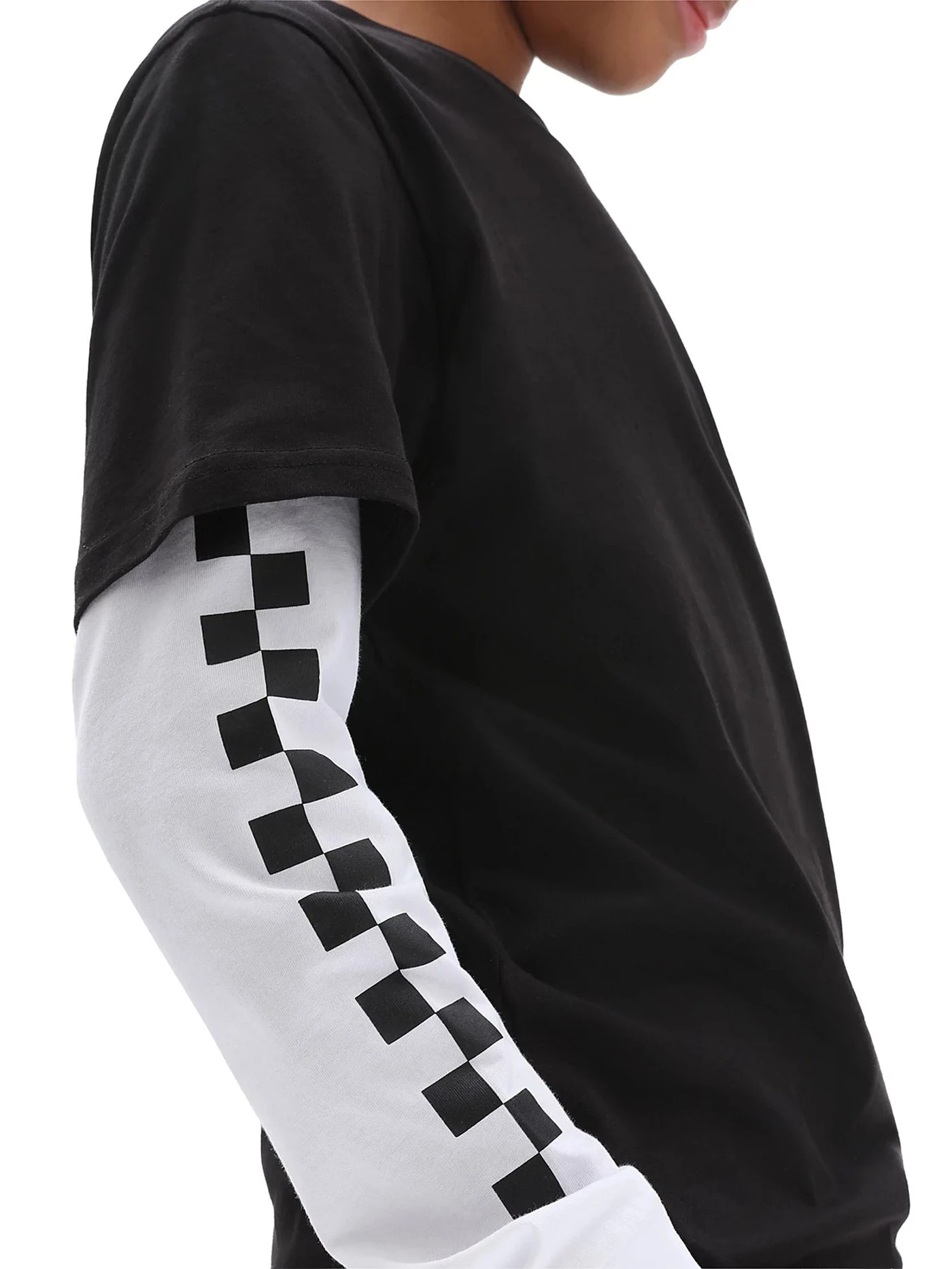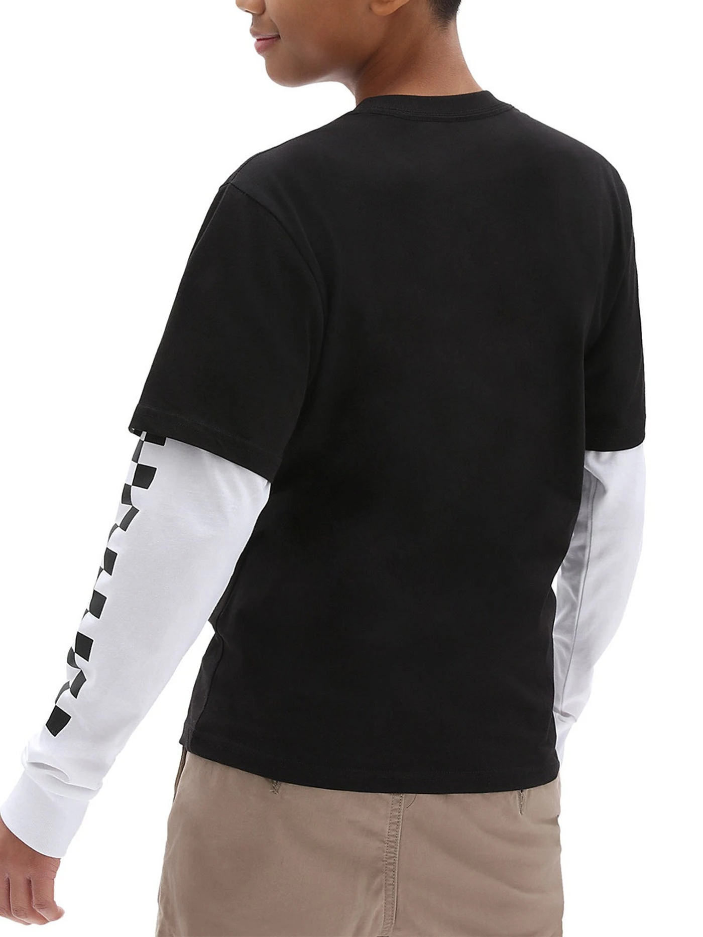The Boys Long Check Twofer is a 100% combed ringspun cotton two-in-one t-shirt with checkerboard graphics at the sleeves and logo graphics at the chest.