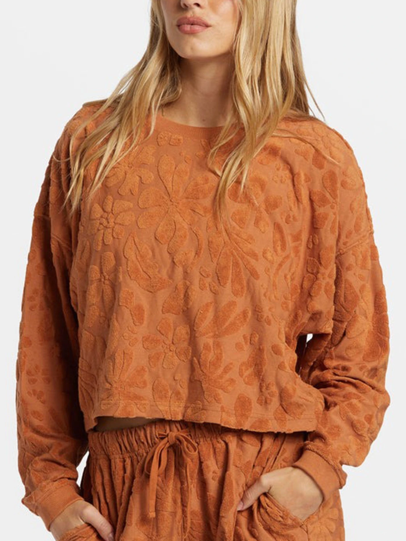 Featuring a tonal floral print and bold colorways, the Loosen Up Crew Neck Sweatshirt from Billabong’s Trip Around The Sun Collection adds a perfect pop to your wardrobe. Crafted from a blended terry jacquard fabric, this boxy pullover sweatshirt has a relaxed fit with a ribbed neckband and sleeve cuffs for an elevated look.
