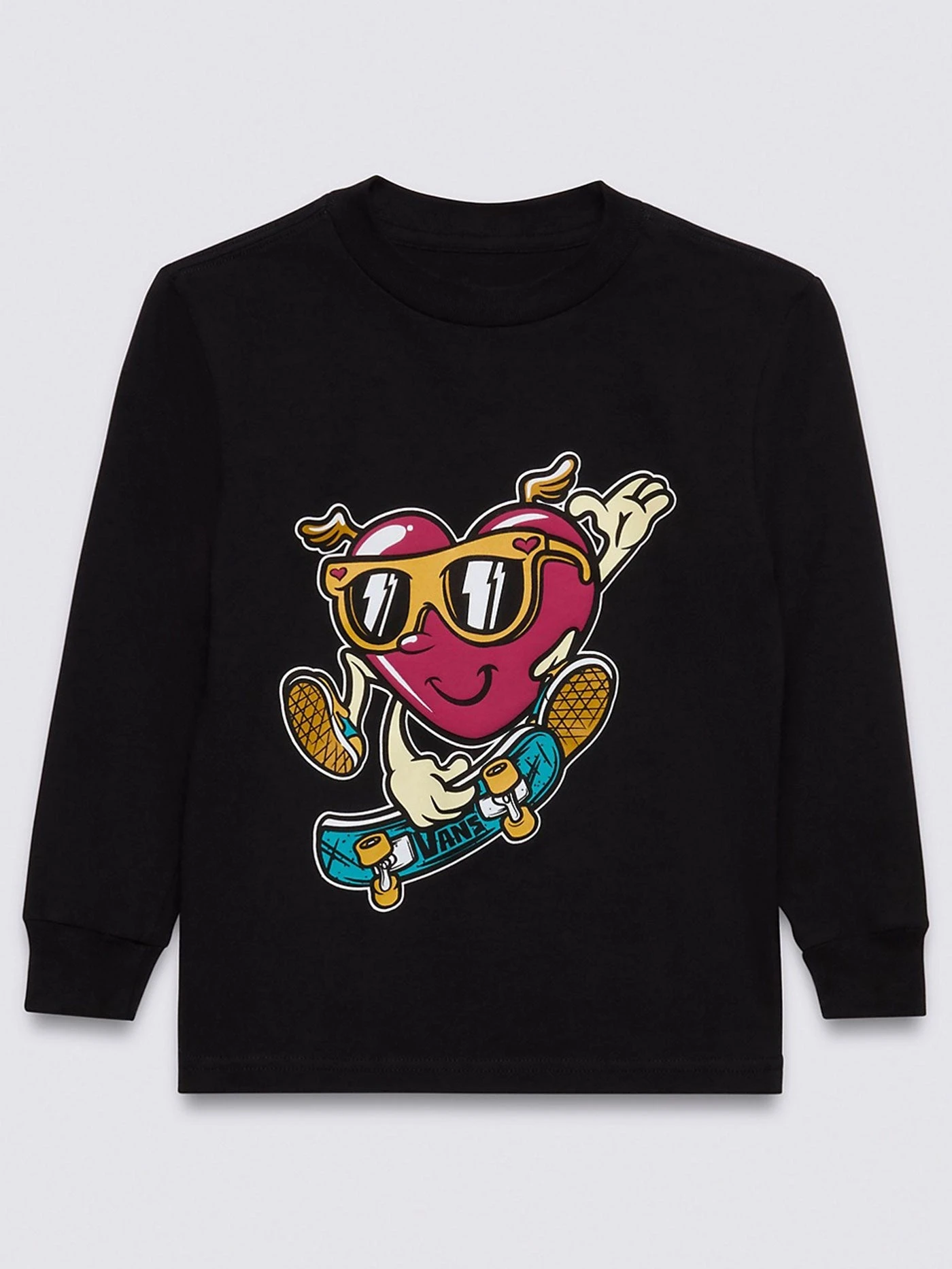 Open your heart in the Little Kids Love Is Long Sleeve T-Shirt, a long sleeve crew neck T-shirt. Using carded ringspun fabrication for a softer, smoother shirt, it features a graphic of a skateboarding heart on the front.