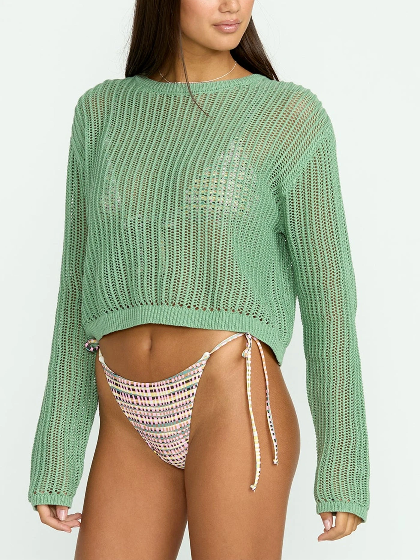 Effortless mesh sweater crafted from a soft, breathable cotton-poly blend. Relaxed pullover silhouette in an open knit with subtle branded badge. Breezy, versatile layering piece.