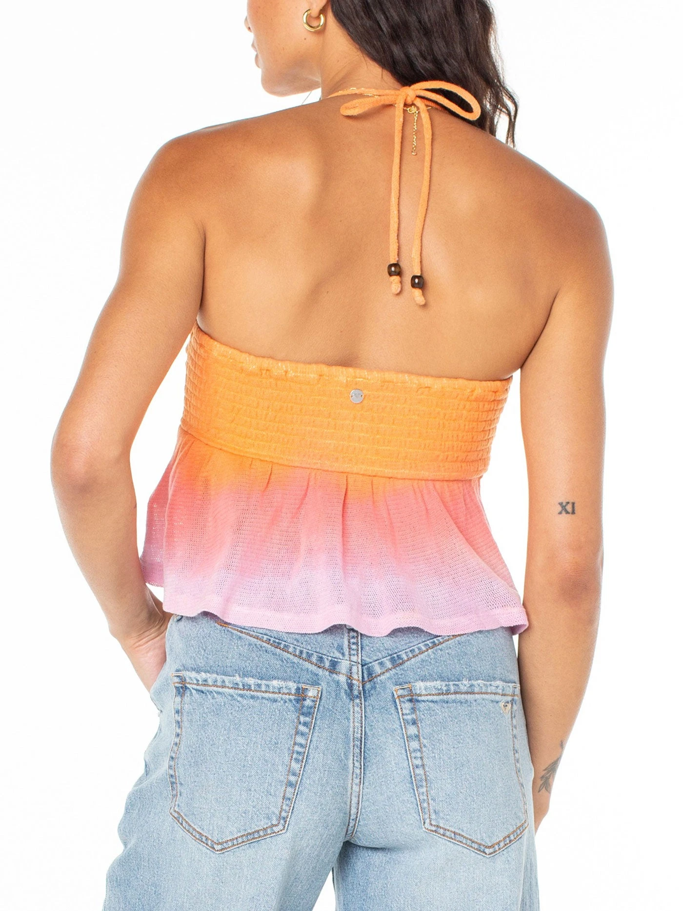 The Magic Hour top is a fresh spin on a classic halter style. Crafted from a knit fabric and accented with feminine flair, this piece is designed for flaunting tan lines.