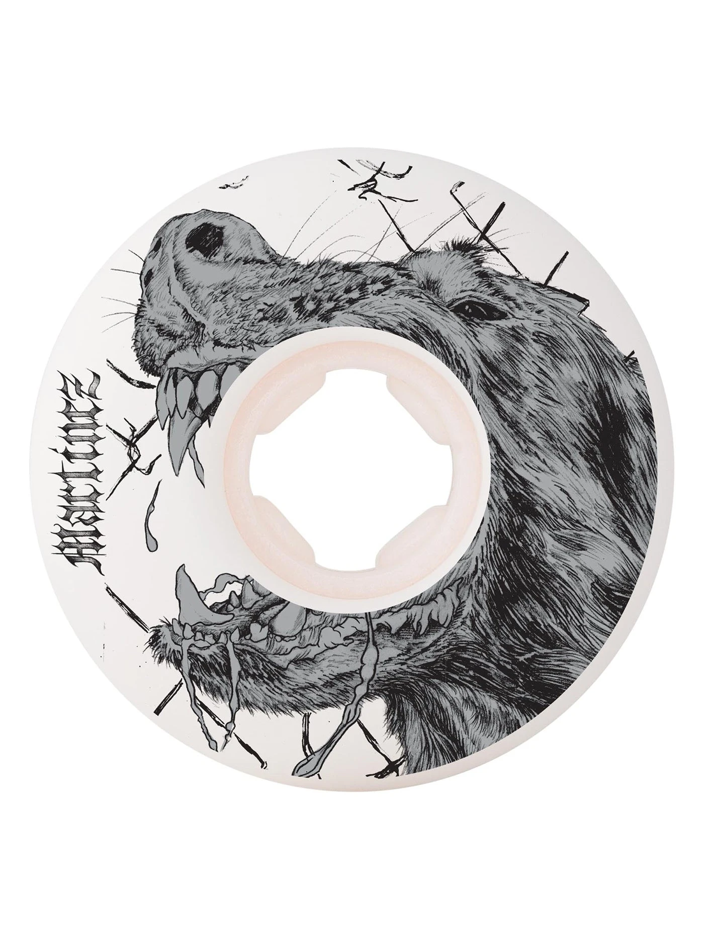 OJ Wheels 54mm, 99a Milton Martinez Guero Original Pro Chubbies wheels white with metallic silver graphics. OJ’s all new Chubbies shapes feature a super-wide riding surface for the best slides, with big round radial edges that make getting on-and-off of curbs, ledges, and edges effortless.