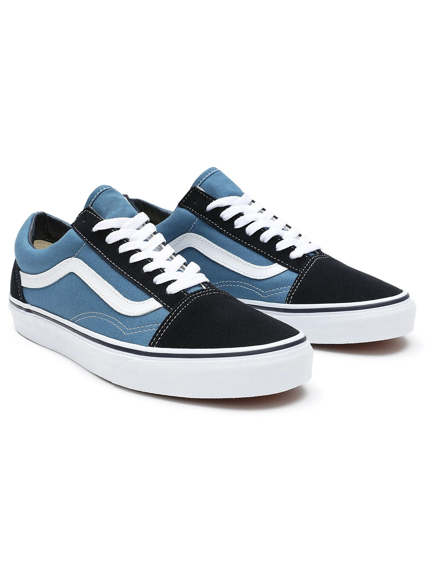 First unveiled back in 1977, the Vans Old Skool has been near the top of the bestseller list ever since thanks to its classic fit and instantly recognizable design. This black and navy version takes the Classic look and brings up a notch, allowing the twin shimmer of black and navy to breathe new life into the shoe. Reinforced toe caps, supportive padded colors, and the signature rubber waffle outsoles take care of the practical side, while the color speaks for itself. The Old Skool Primary is the obvious choice for anyone looking to bridge the divide between iconic and innovative.