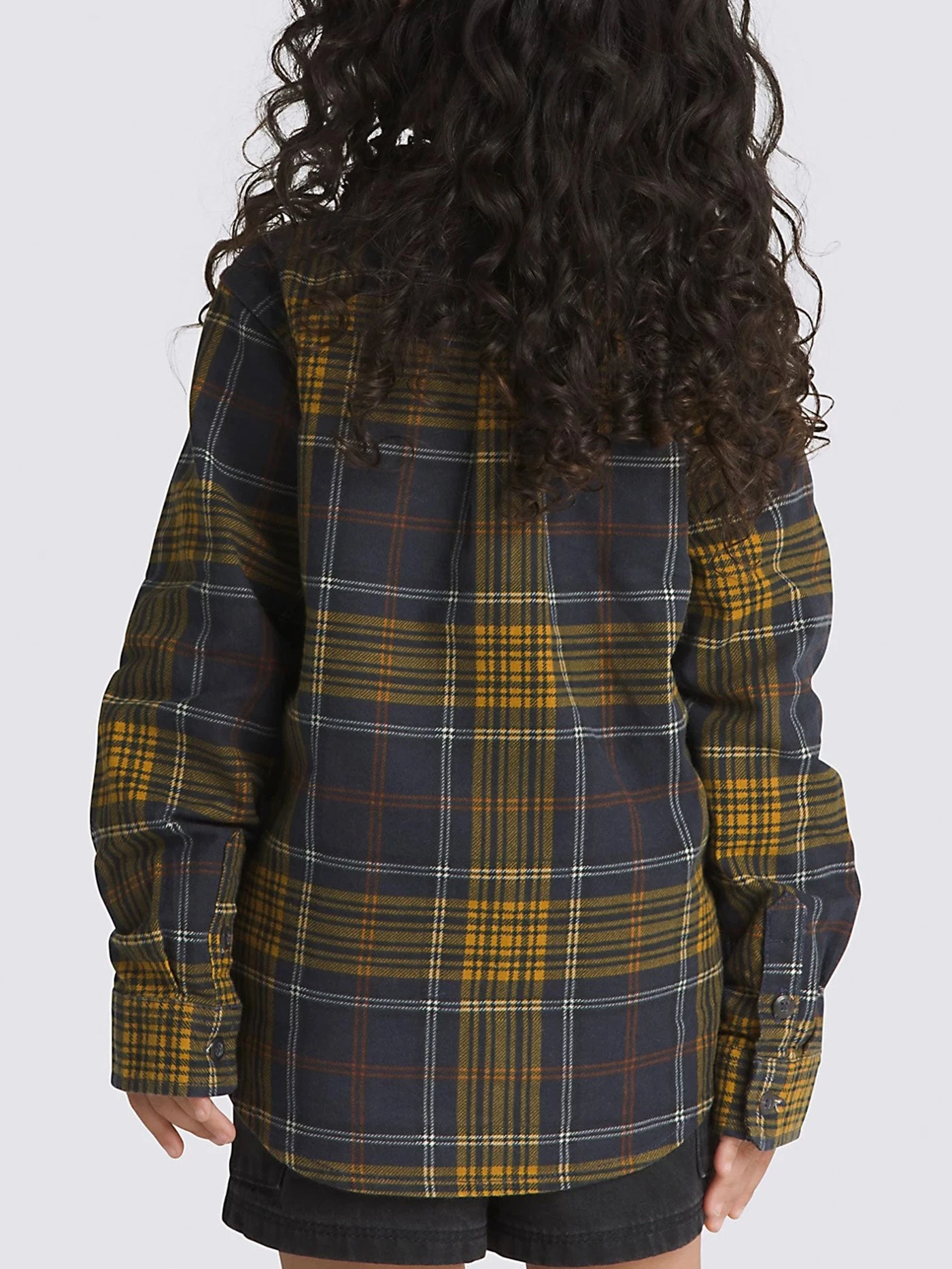 Resurrect the Gen X glory days in the Little Kids Otis Long Sleeve Woven Shirt, a summary down flannel shirt with plaid print, chest pockets, and a woven Vans® flag label at the side seam.