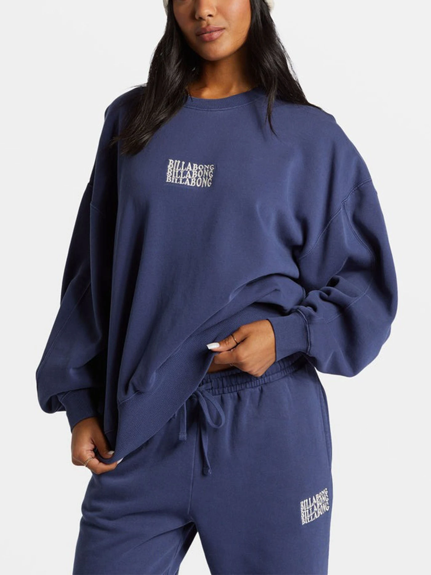 cozy boxy sweatshirt for chilly days, the Palmin Kendal blended fleece pullover has long sleeves, a crew neck, and ribbed cuffs and Billabong embroidery at the front. Perfect for lounging in comfort.