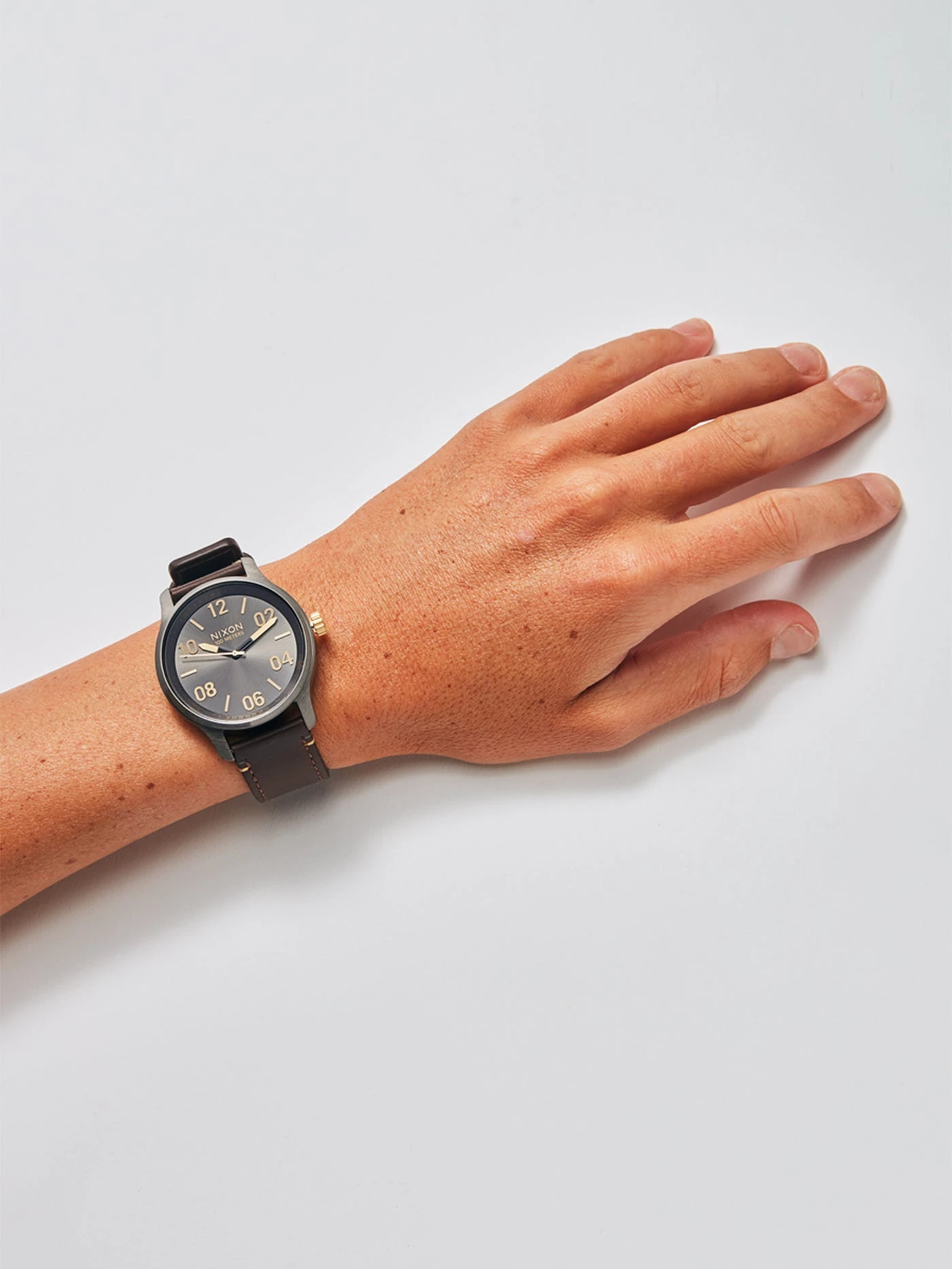 The Patrol is for those who are on time, all the time. 24-hour indices on the inner bezel surround pronounced numerical markers on the face. It’s got a slim profile paired with a genuine leather band that’s a modern take on a classic field watch.