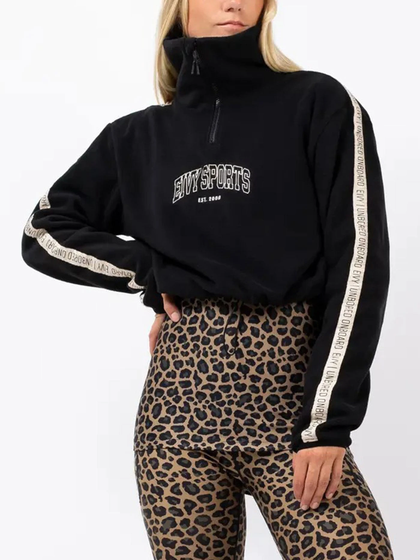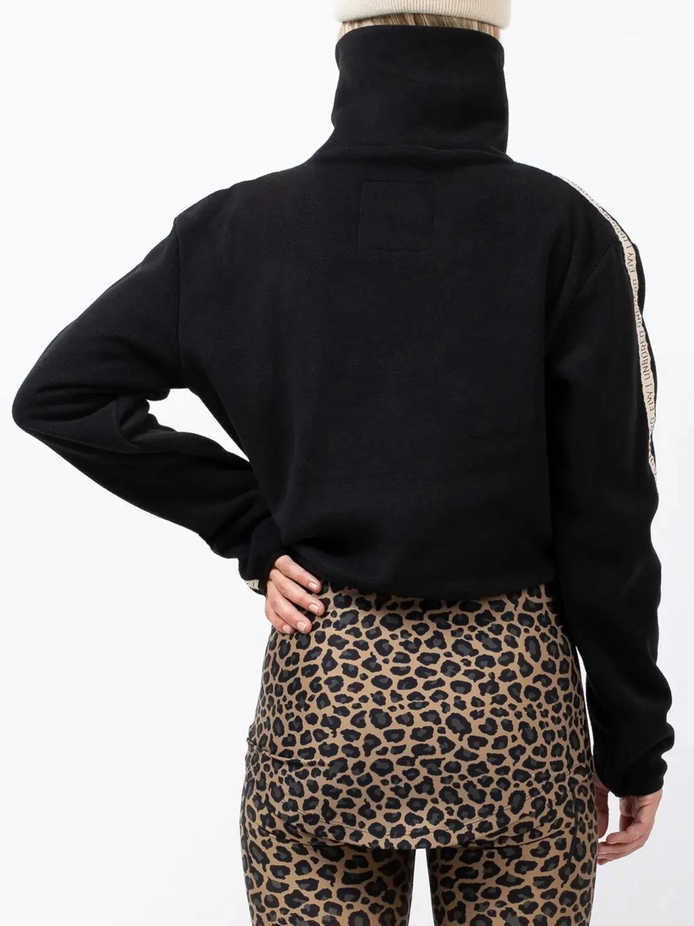 Soft and warm black fleece pullover in a cropped design with integrated thumbloops and a collar that can be opened and closed with a YKK® zipper. Great fit paired with bibs style pants since the cropped cut prevents bulking up beneath, or just wear it at home or in your everyday life.