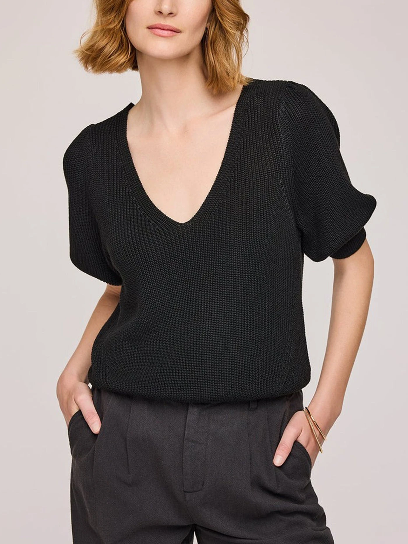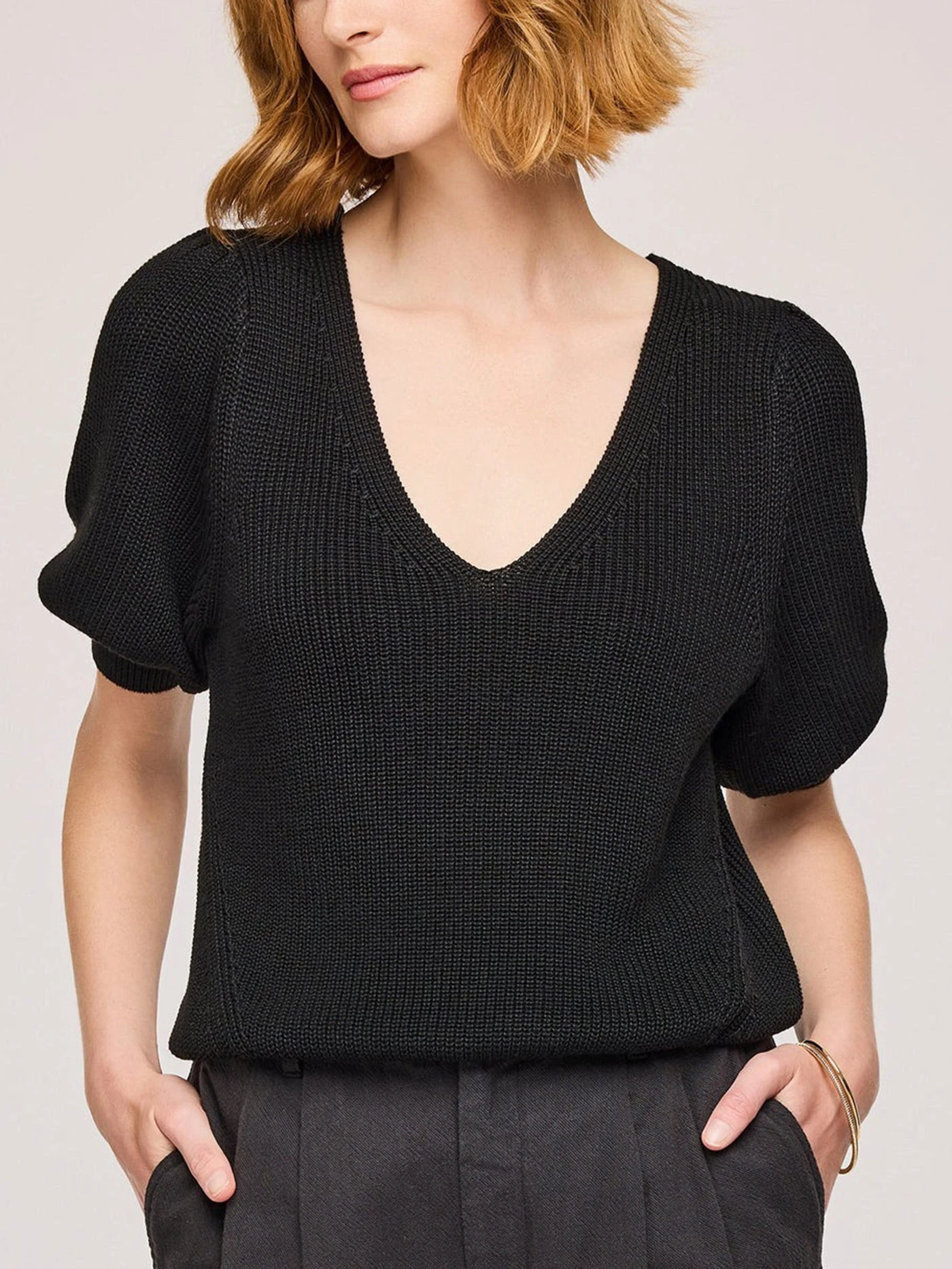 Made of a super soft yarn, the Phoebe sweater features a v-neckline and puff sleeves. It’s effortlessly feminine and perfect for everyday wear.
