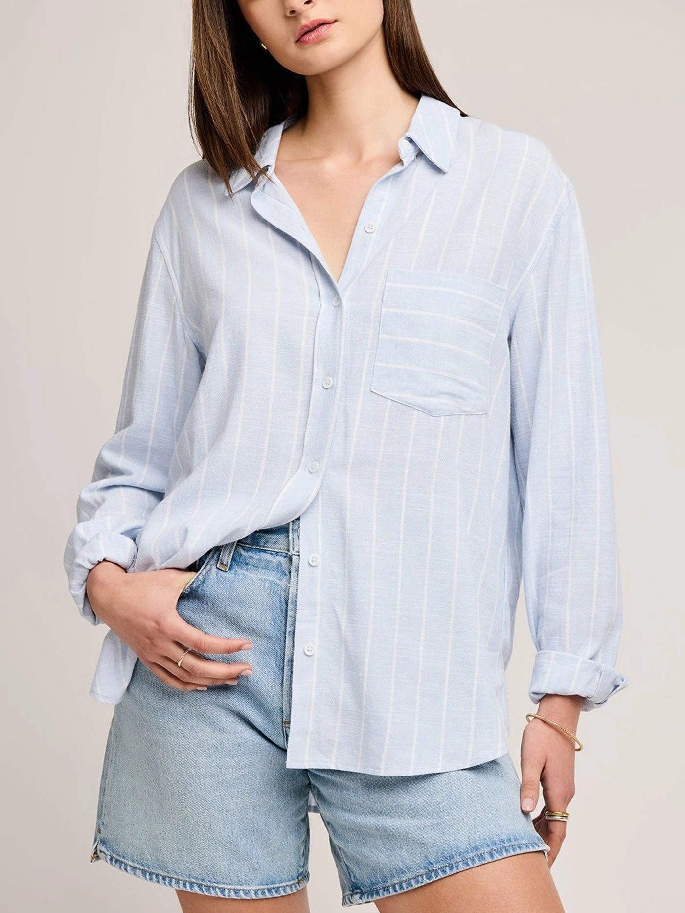 The Portia summary-down is made of a linen blend for an effortless look and feel. Wear it as is or worn open with the Amalfi short or Finley pant.