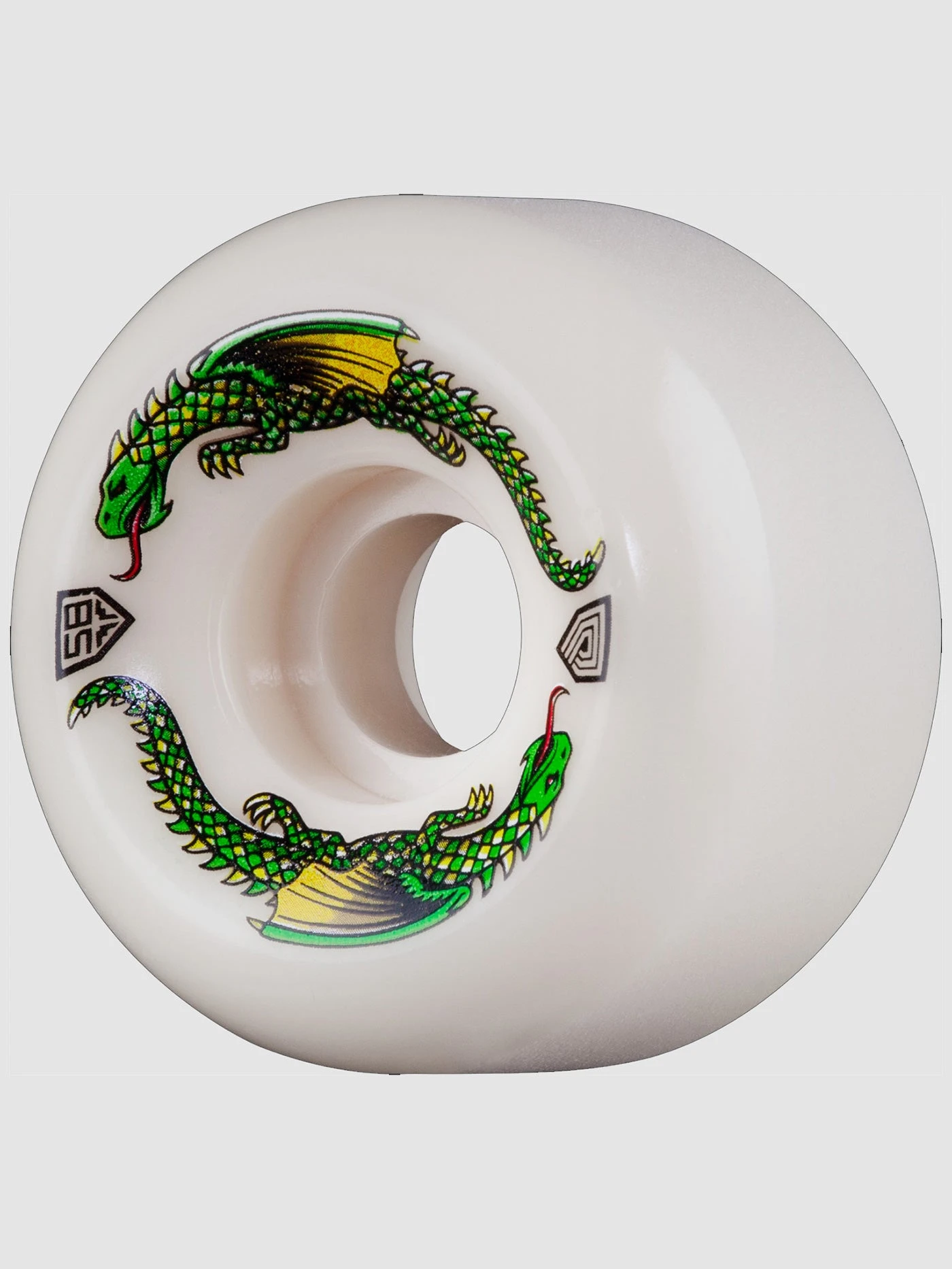 About Dragon Formula: The amazing new Dragon Formula™ (DF) Urethane used to create these wheels is another industry leading innovation from Powell • Peralta. DF-93A Dragons will not only roll over rough terrain, but also grip and slide like 99A and 101A wheels do, so that you can do all your normal tricks and more on the greater range of skate terrains made skateable by its softer 93A hardness.